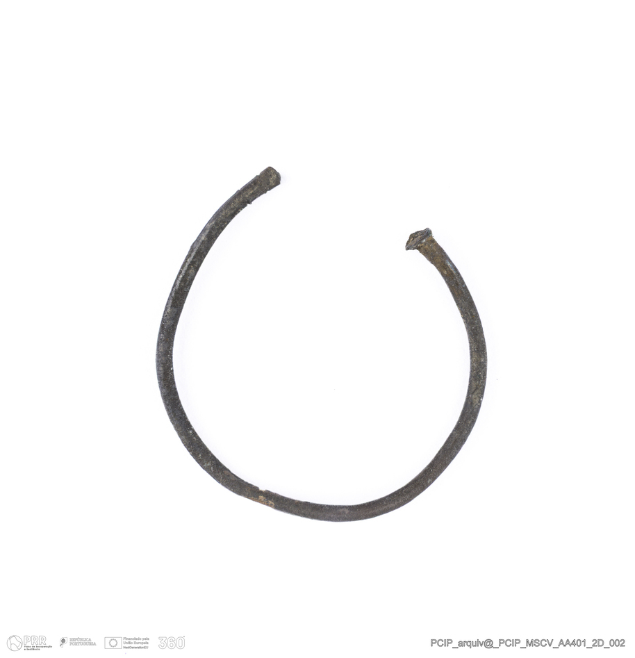 Matéria/Técnica: Metal; Cronologia: Século XVI- XVII; Autoria: Desconhecida; Dimensões: Diâmetro: 23mm; Espessura: 2mm.