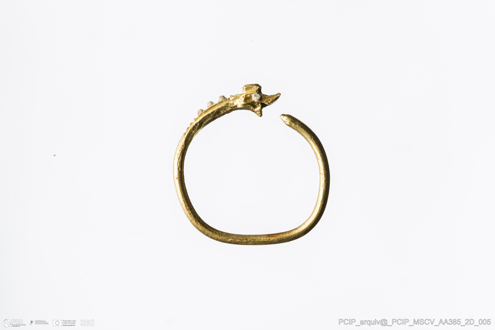 Matéria/Técnica: Ouro; Cronologia: Século XVI-Século XVII; Autoria: Desconhecida; Dimensões: Diâmetro: 17mm; Altura: 2,5mm.