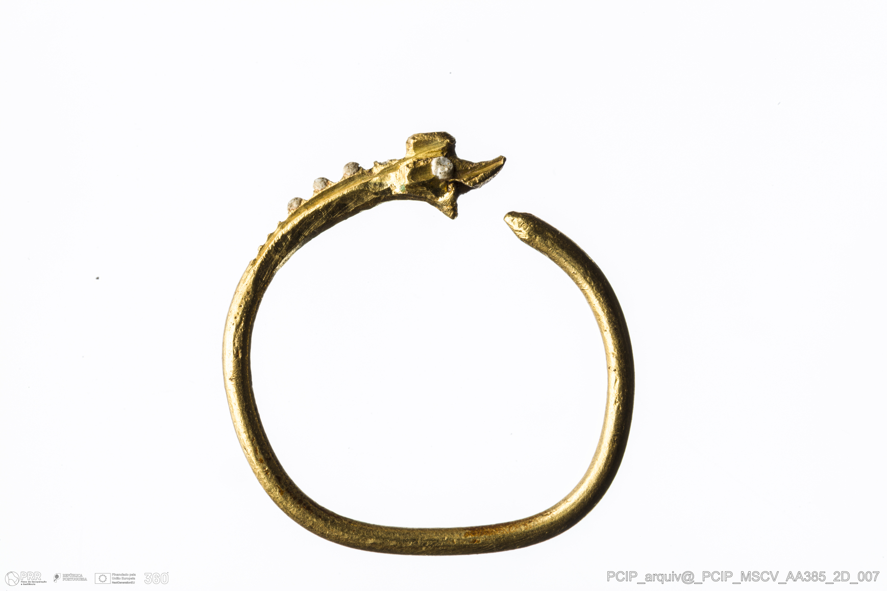 Matéria/Técnica: Ouro; Cronologia: Século XVI-Século XVII; Autoria: Desconhecida; Dimensões: Diâmetro: 17mm; Altura: 2,5mm.