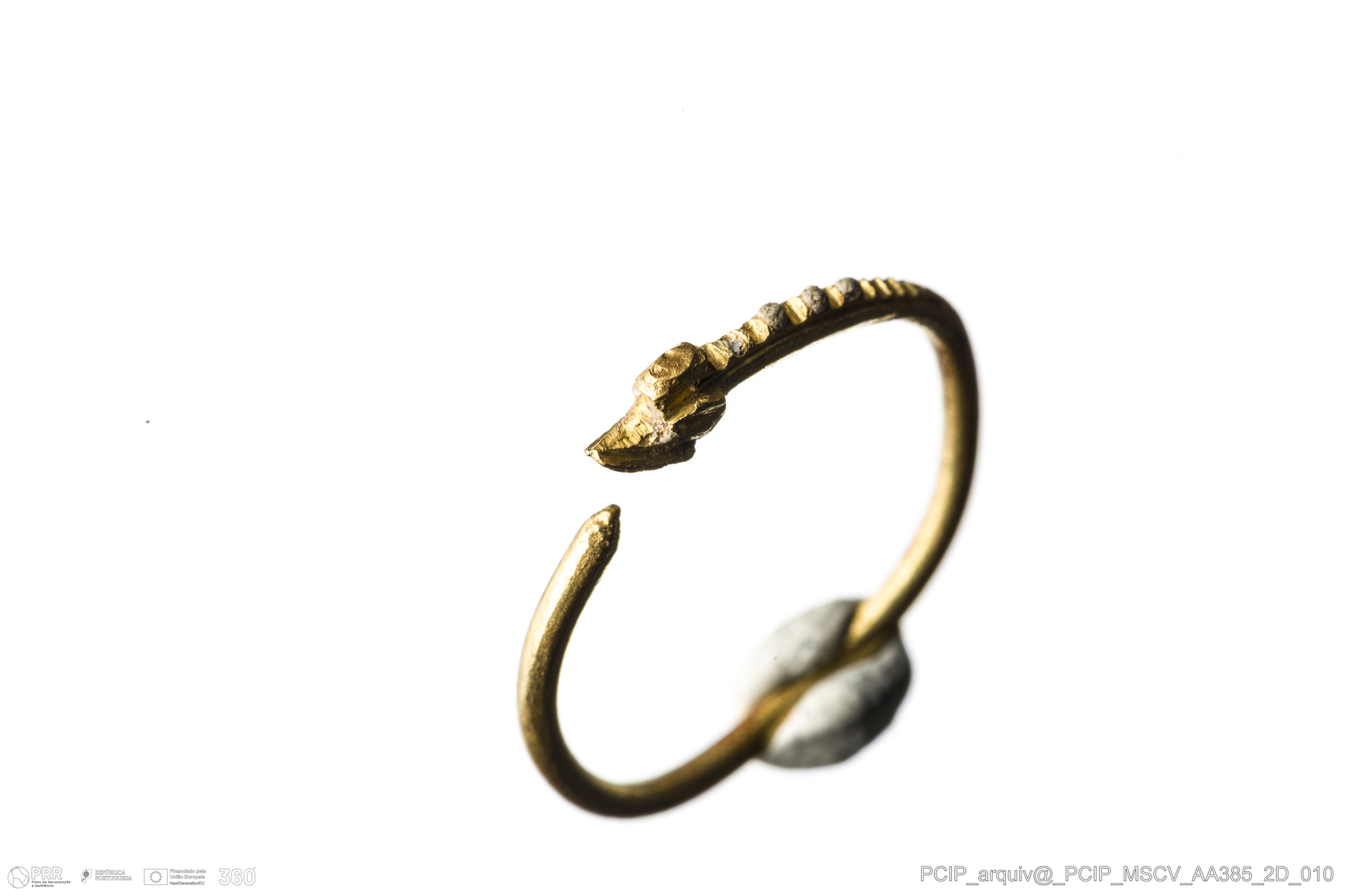 Matéria/Técnica: Ouro; Cronologia: Século XVI-Século XVII; Autoria: Desconhecida; Dimensões: Diâmetro: 17mm; Altura: 2,5mm.