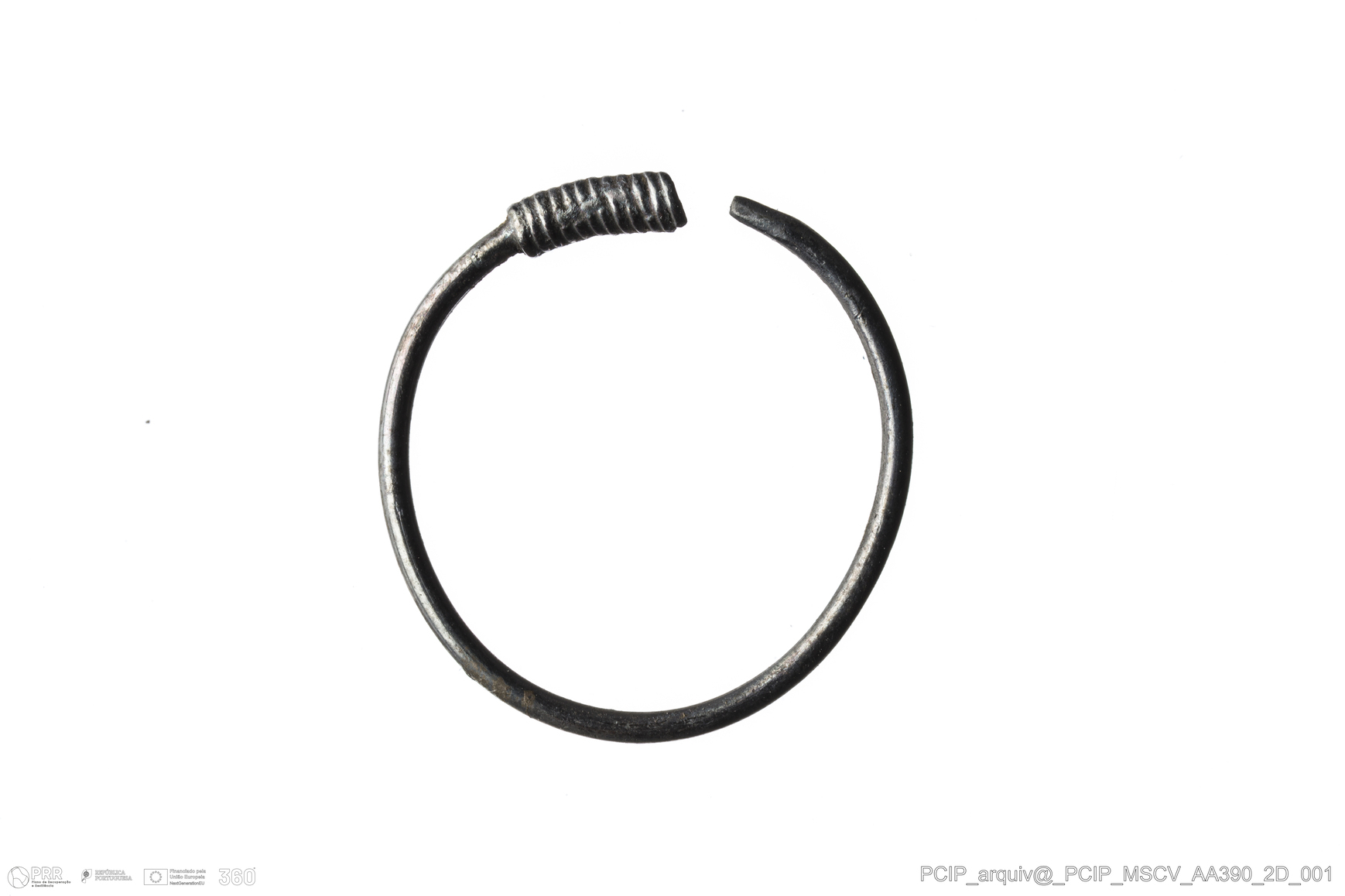 Matéria/Técnica: Prata; Cronologia: Século XVI-Século XVII; Autoria: Desconhecida; Dimensões: Diâmetro: 17mm; Comprimento do remate: 3mm.