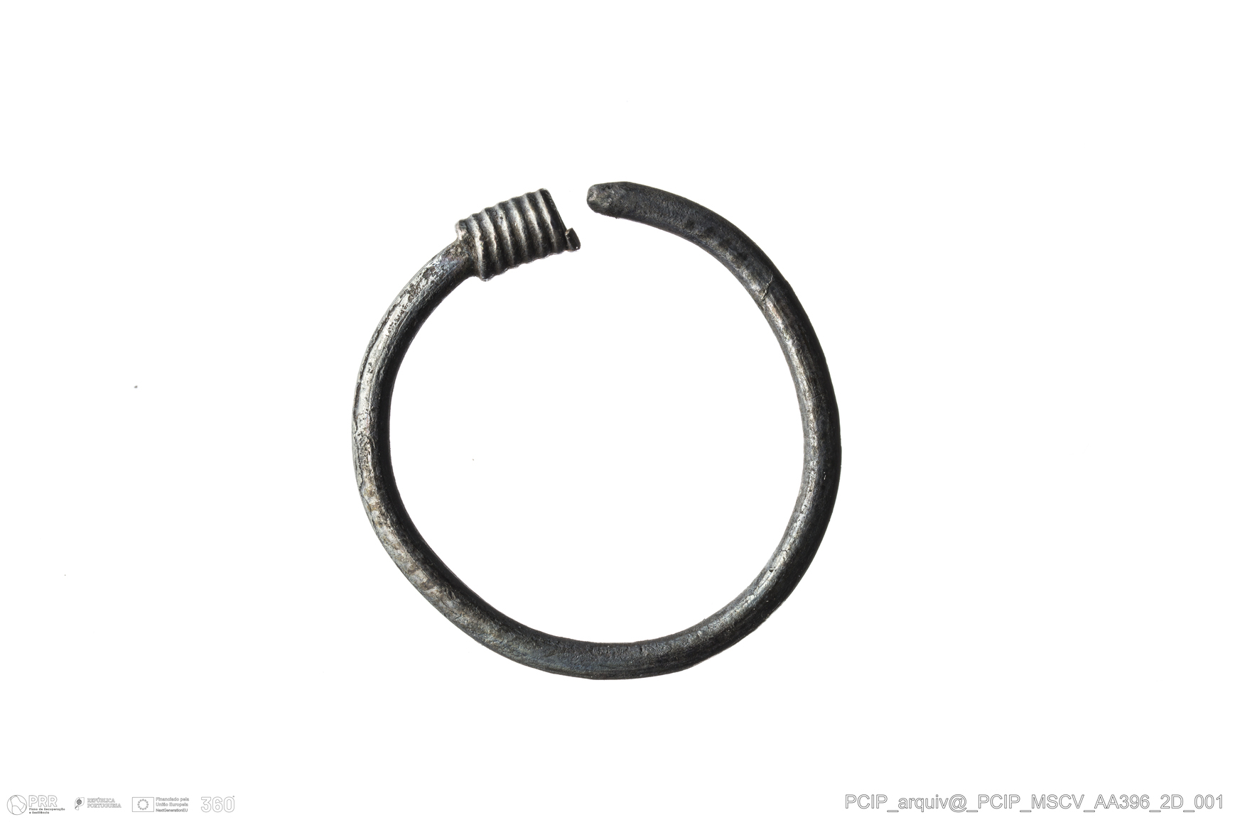 Matéria/Técnica: Prata; Cronologia: Século XVI-Século XVII; Autoria: Desconhecida; Dimensões: Diâmetro: 17mm; Comprimento do remate: 3mm.
