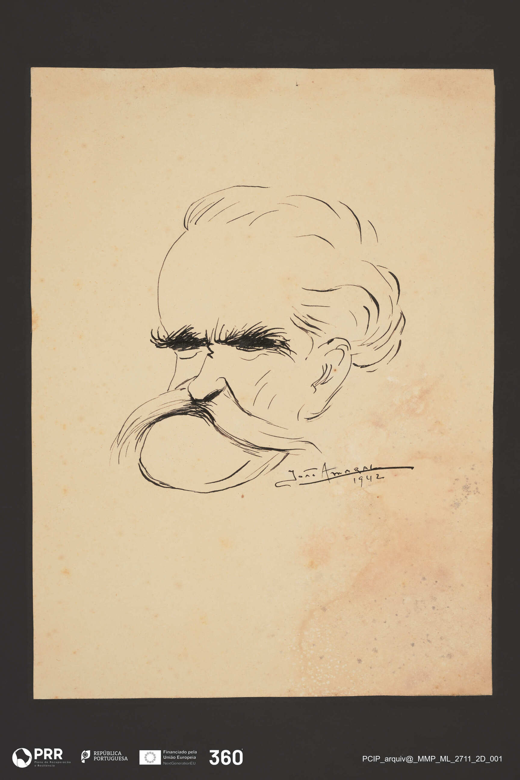 Matéria/Técnica: Desenho à pena; Cronologia: 1942; Autoria: Amaral, João (1874 - 1955); Dimensões (cm): Altura: 25,5 x Largura: 18,8.