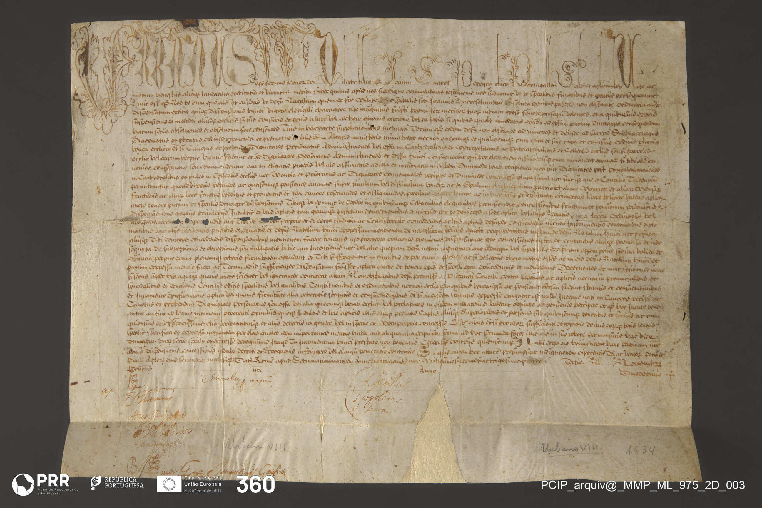Matéria/Técnica: Escrita bulática; Cronologia: 1634; Autoria: Desconhecida; Dimensões (cm): Altura: 34,8 x Largura: 47.