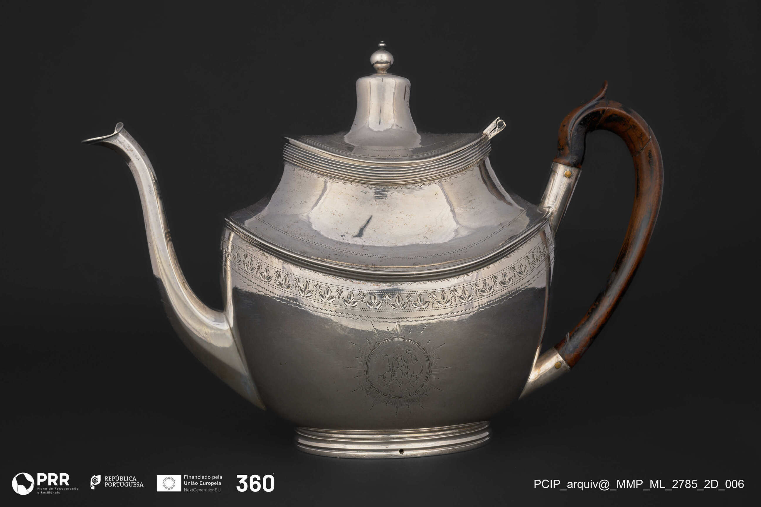 Matéria/Técnica: Prata fundida e cinzelada; Cronologia: 1801-1850; Autoria: Desconhecida; Dimensões (cm): Altura: 20,5 x Largura: 28,5 x Diâmetro: b. 10,3 x 8,2.