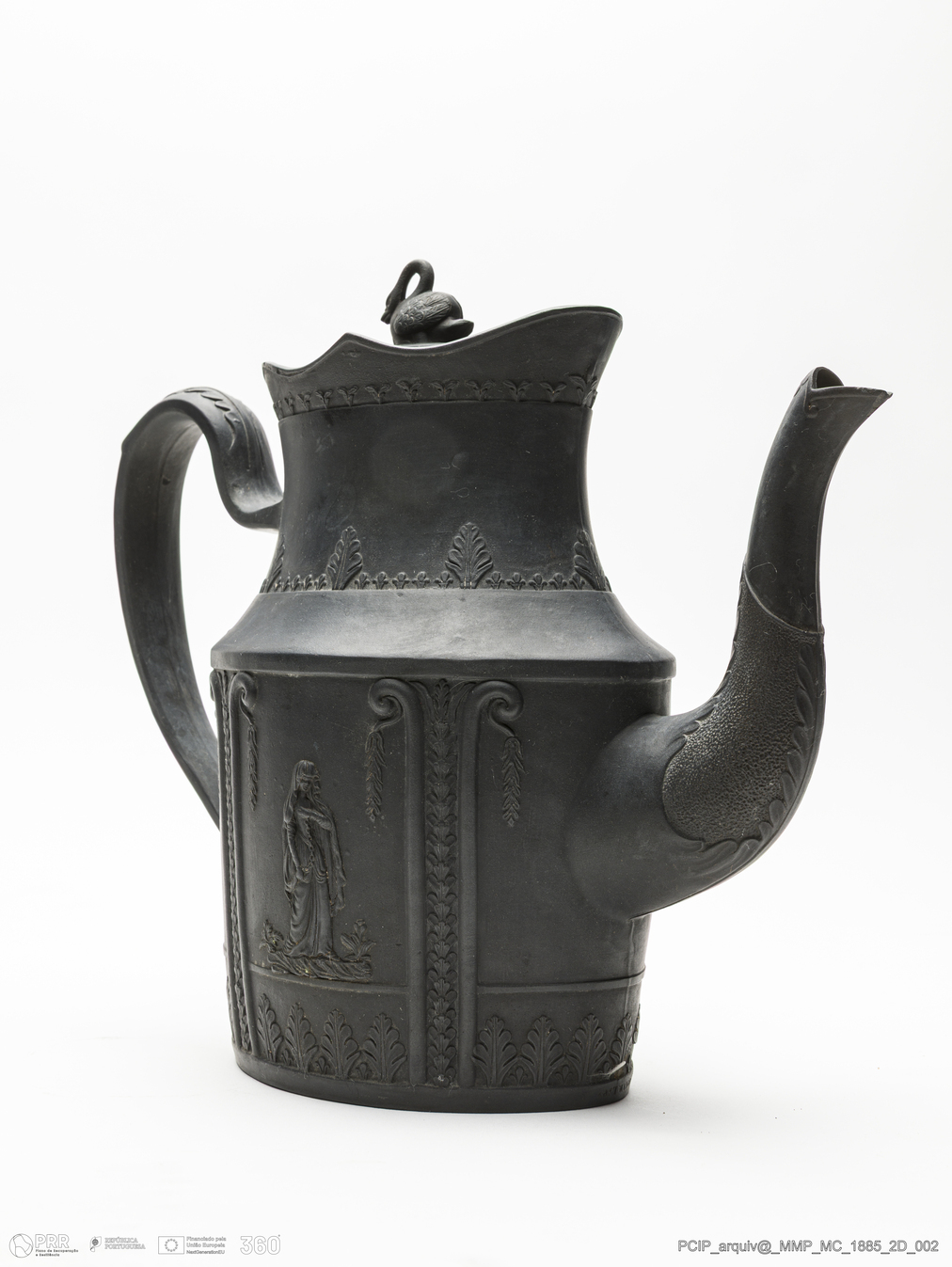 Matéria/Técnica: Faiança modelada. Black basalt; Cronologia: século XIX; Autoria: Desconhecido. Eastwood; Dimensões (cm): Altura: 24; Largura: 28; Comprimento: 10.
