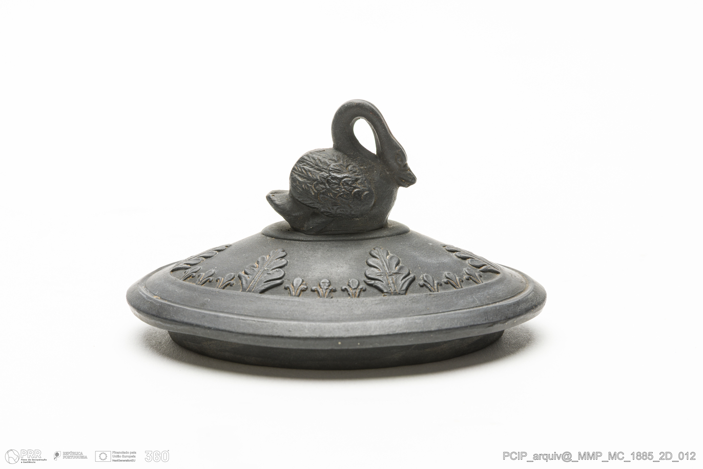 Matéria/Técnica: Faiança modelada. Black basalt; Cronologia: século XIX; Autoria: Desconhecido. Eastwood; Dimensões (cm): Altura: 24; Largura: 28; Comprimento: 10.