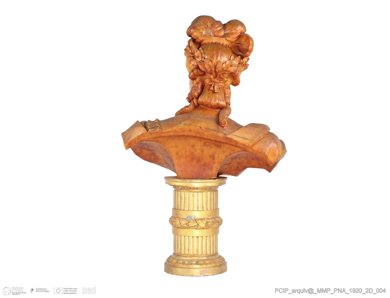 Matéria/Técnica: Cera de abelha e resina de dâmar; Cronologia: 1831; Autoria: Rafael, Joaquim (1783-1864); Dimensões (cm): Altura: 86; Largura: 53; Profundidade: 28.