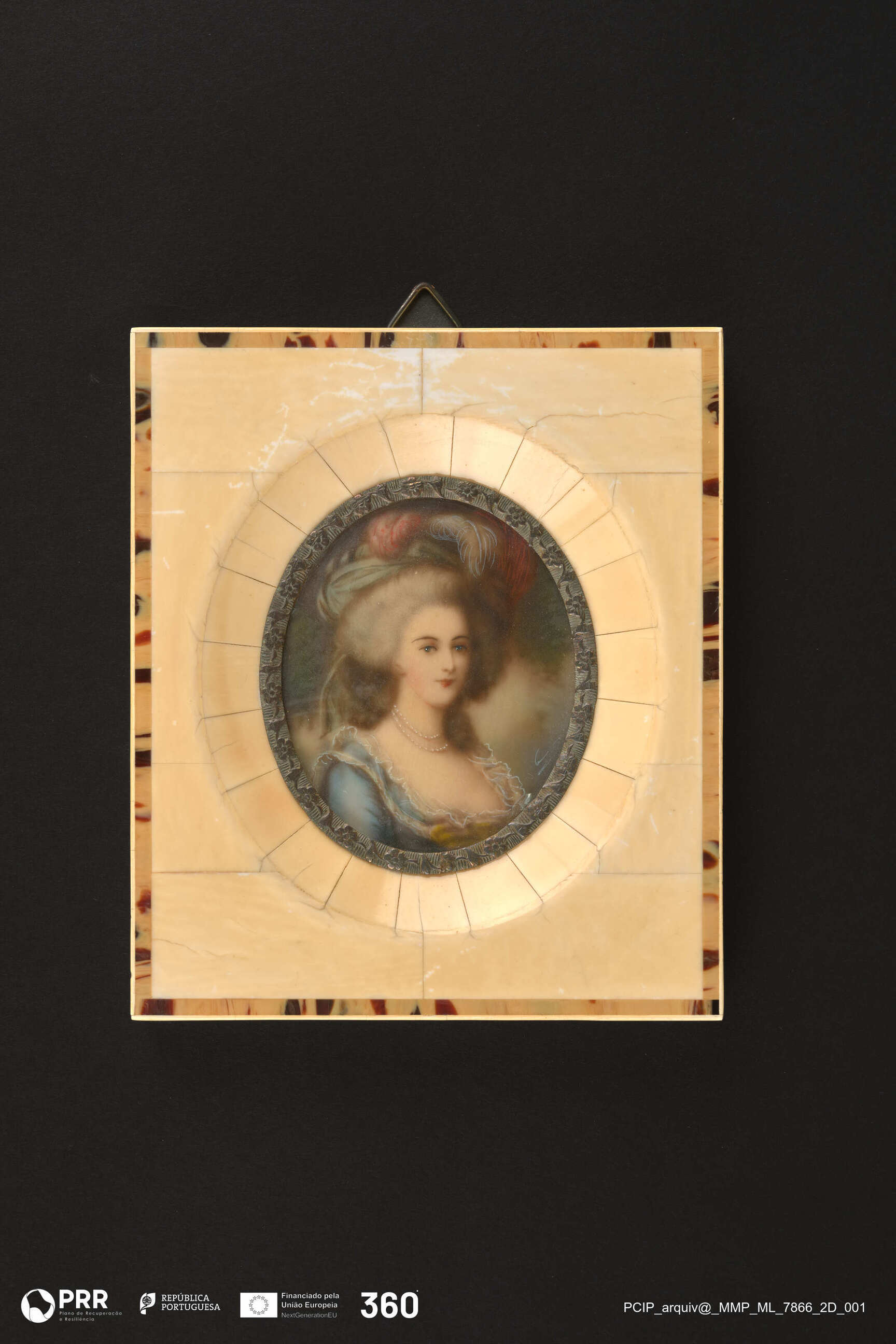 Matéria/Técnica: Óleo sobre marfim; Cronologia: Desconhecida; Autoria: Desconhecida; Dimensões (cm): Altura: 6,5 x Largura: 5,5.