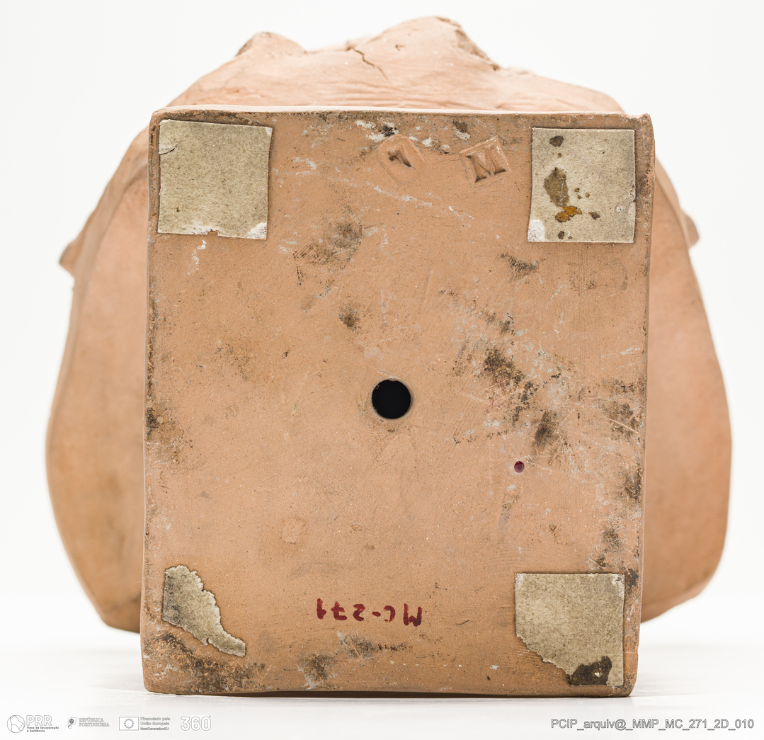 Matéria/Técnica: Barro vermelho modelado e moldado; Cronologia: 1905; Autoria: Manuel Gustavo Bordalo Pinheiro / Fábrica Bordalo Pinheiro, Caldas da Rainha, Portugal; Dimensões (cm): Altura: 32,5; Largura: 21.