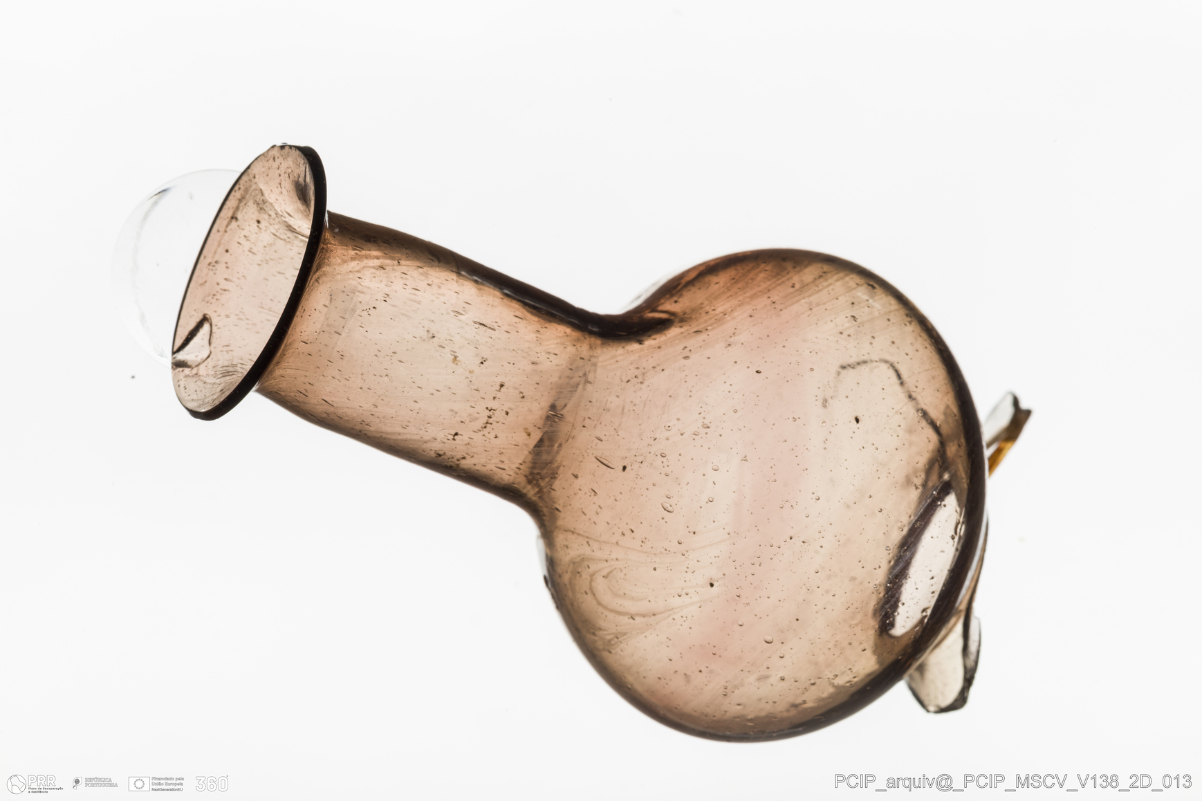 Matéria/Técnica: Vidro; Cronologia: Século XVII; Autoria: Desconhecida; Dimensões: Diâmetro Bordo: 28mm.
