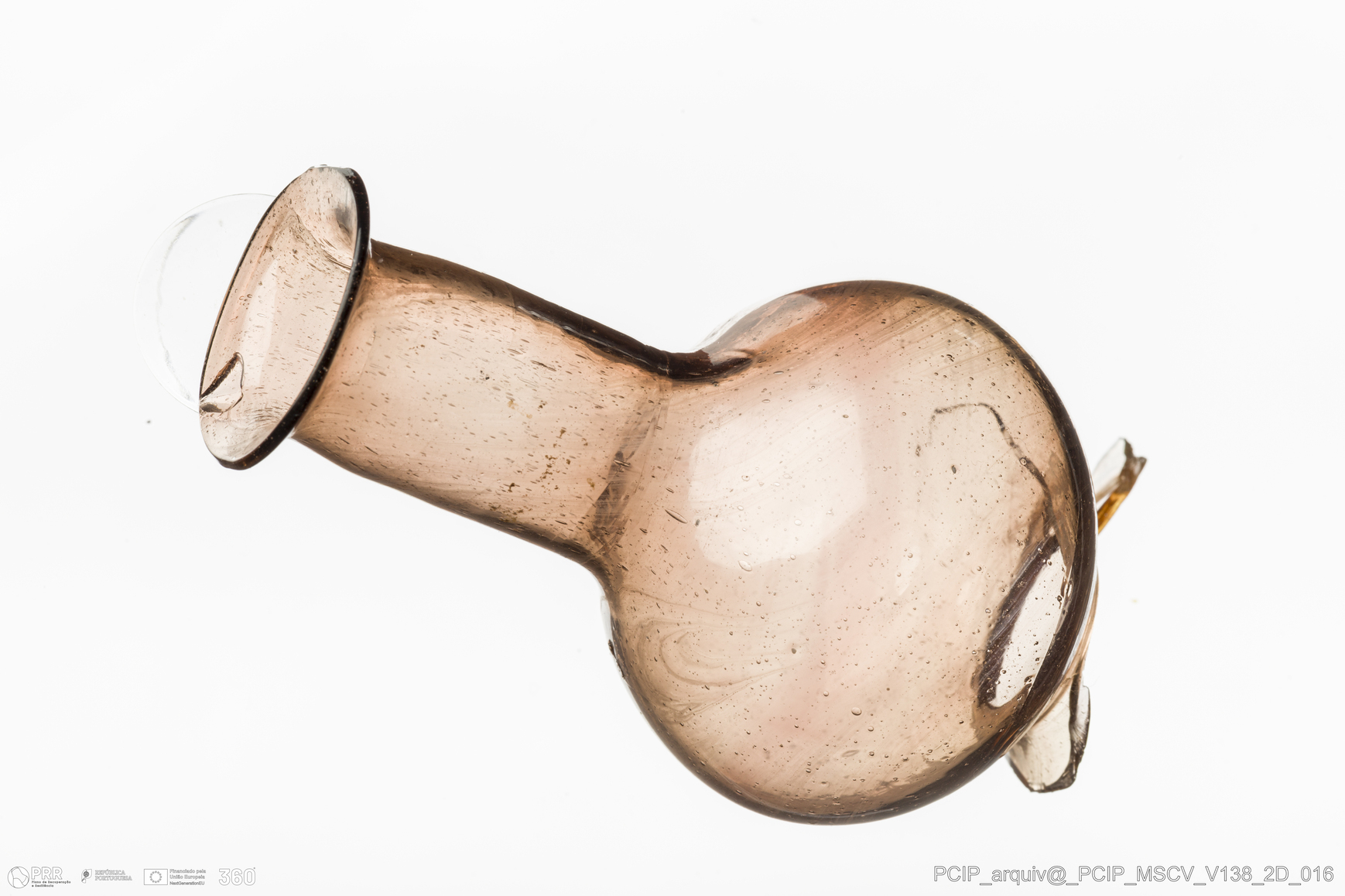 Matéria/Técnica: Vidro; Cronologia: Século XVII; Autoria: Desconhecida; Dimensões: Diâmetro Bordo: 28mm.