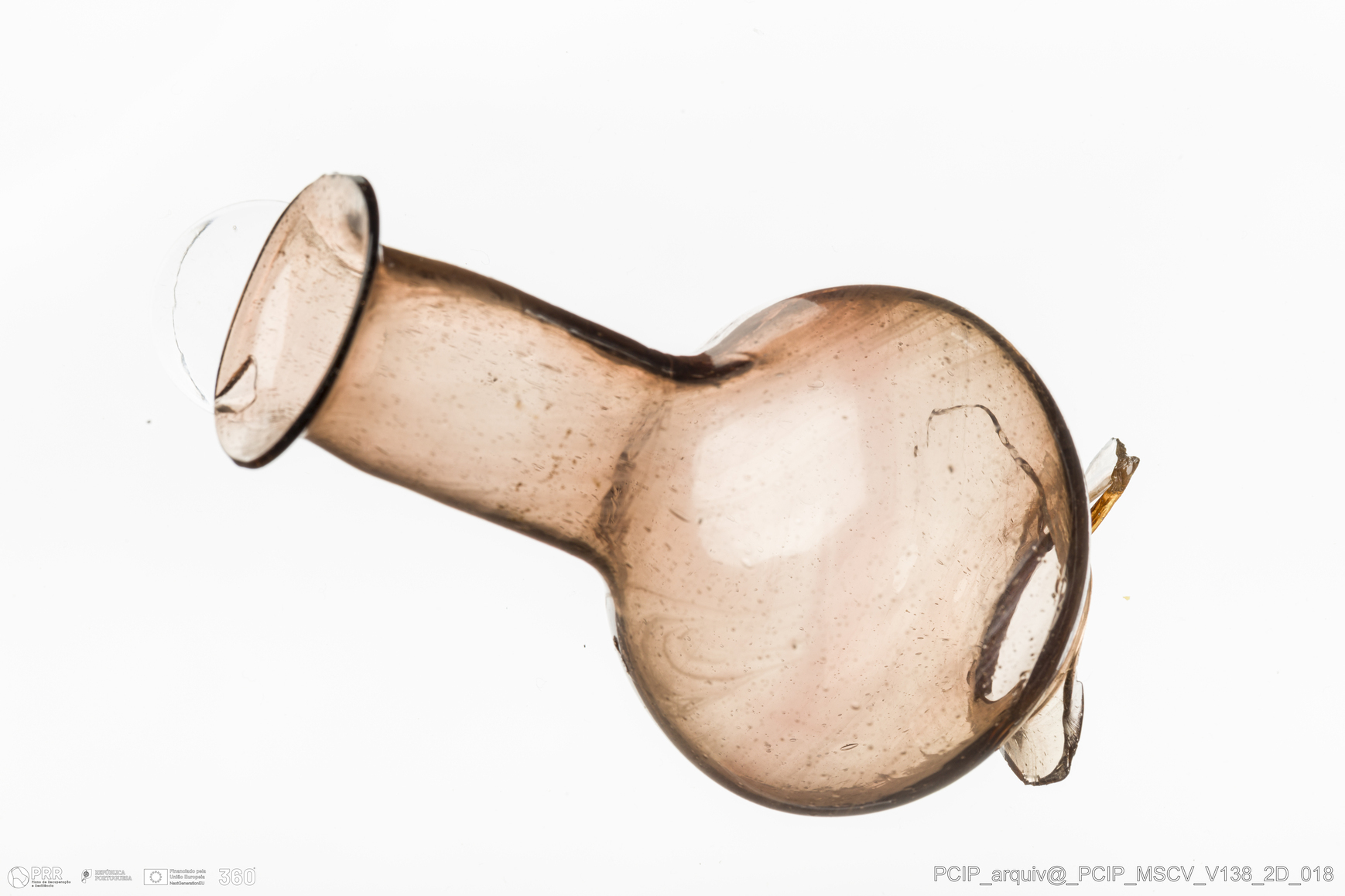 Matéria/Técnica: Vidro; Cronologia: Século XVII; Autoria: Desconhecida; Dimensões: Diâmetro Bordo: 28mm.