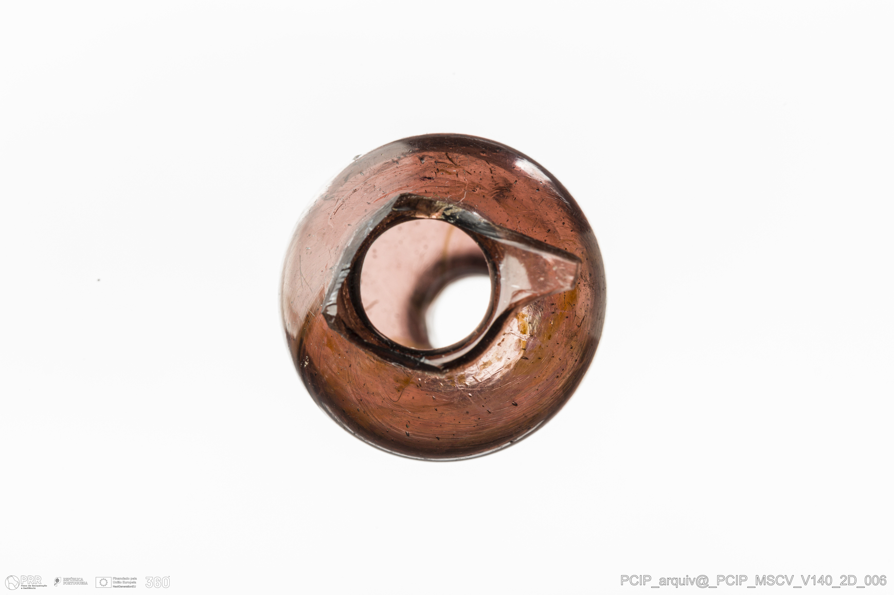 Matéria/Técnica: Vidro; Cronologia: Século XVII; Autoria: Desconhecida; Dimensões: Diâmetro Bordo: 17mm.