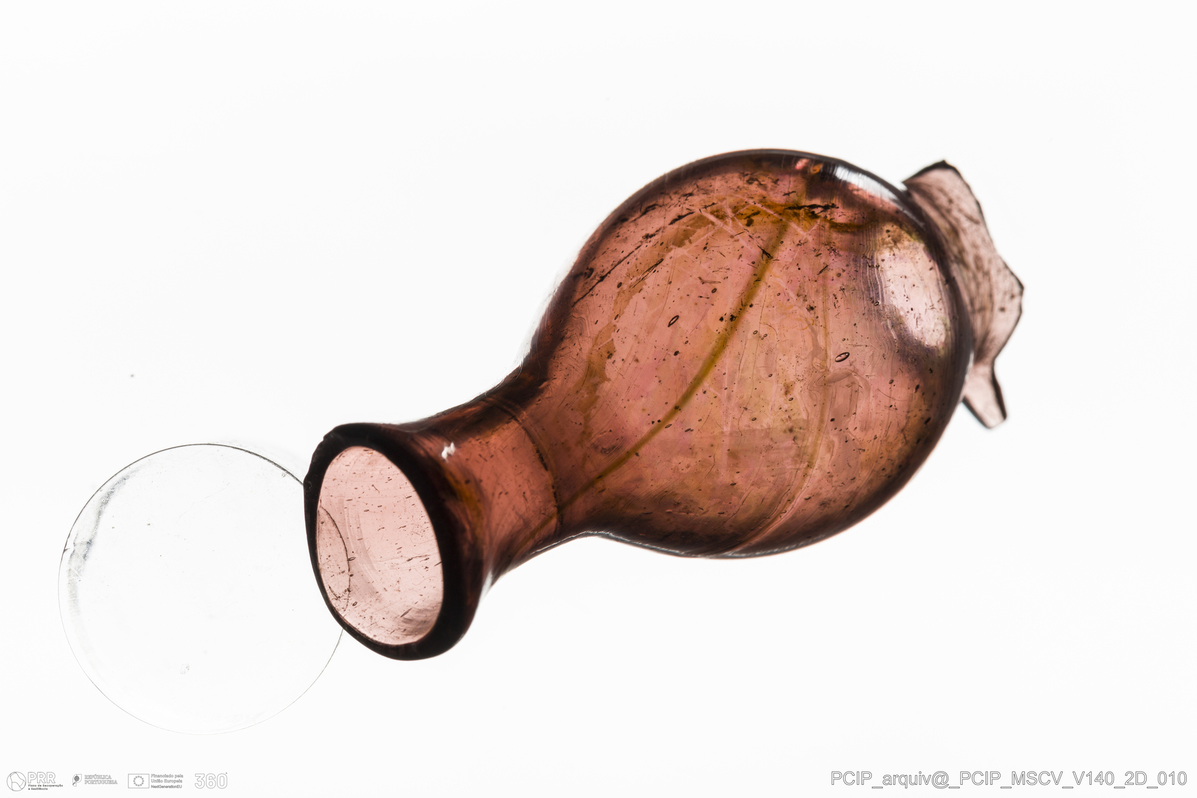 Matéria/Técnica: Vidro; Cronologia: Século XVII; Autoria: Desconhecida; Dimensões: Diâmetro Bordo: 17mm.