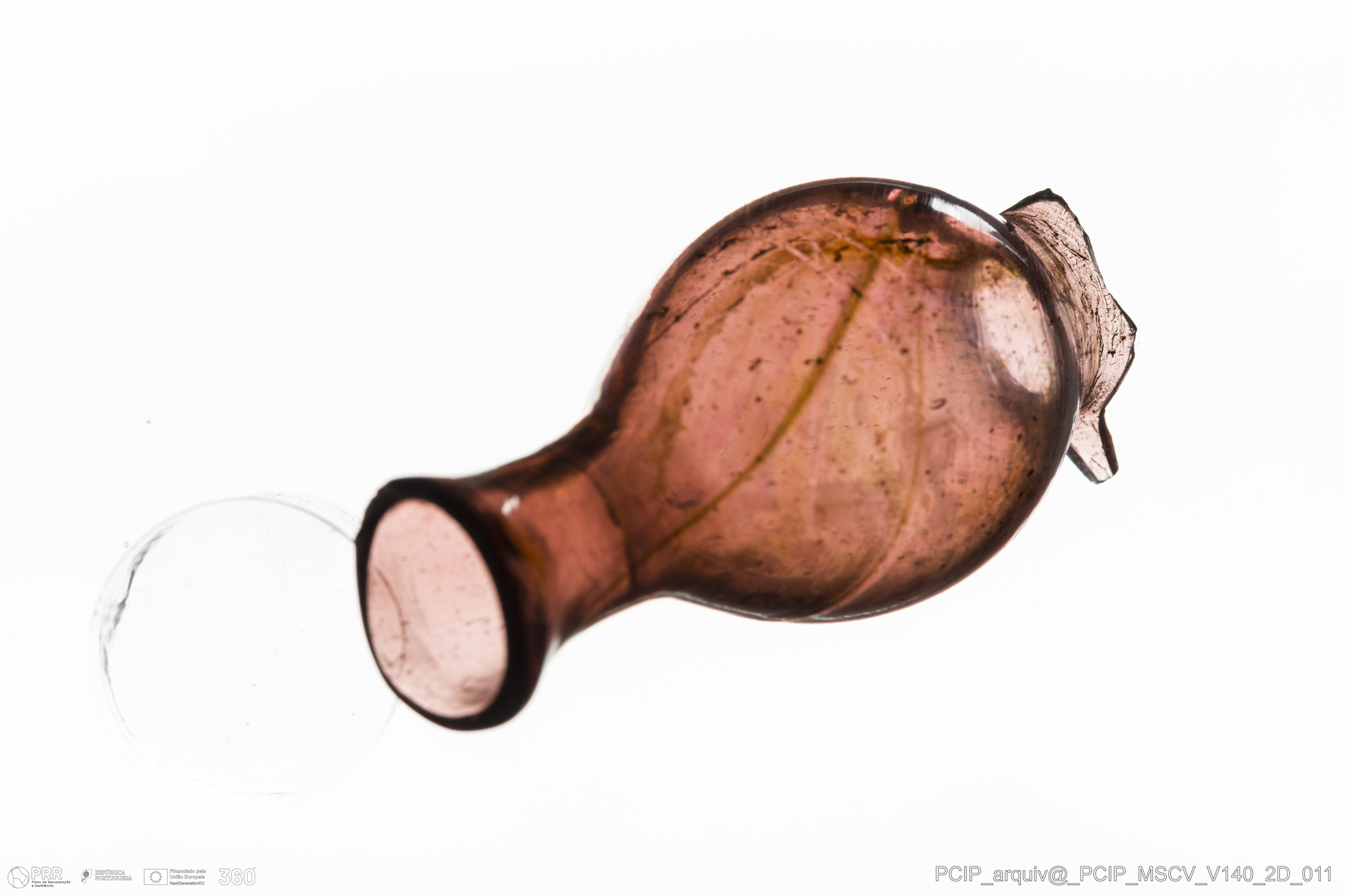 Matéria/Técnica: Vidro; Cronologia: Século XVII; Autoria: Desconhecida; Dimensões: Diâmetro Bordo: 17mm.