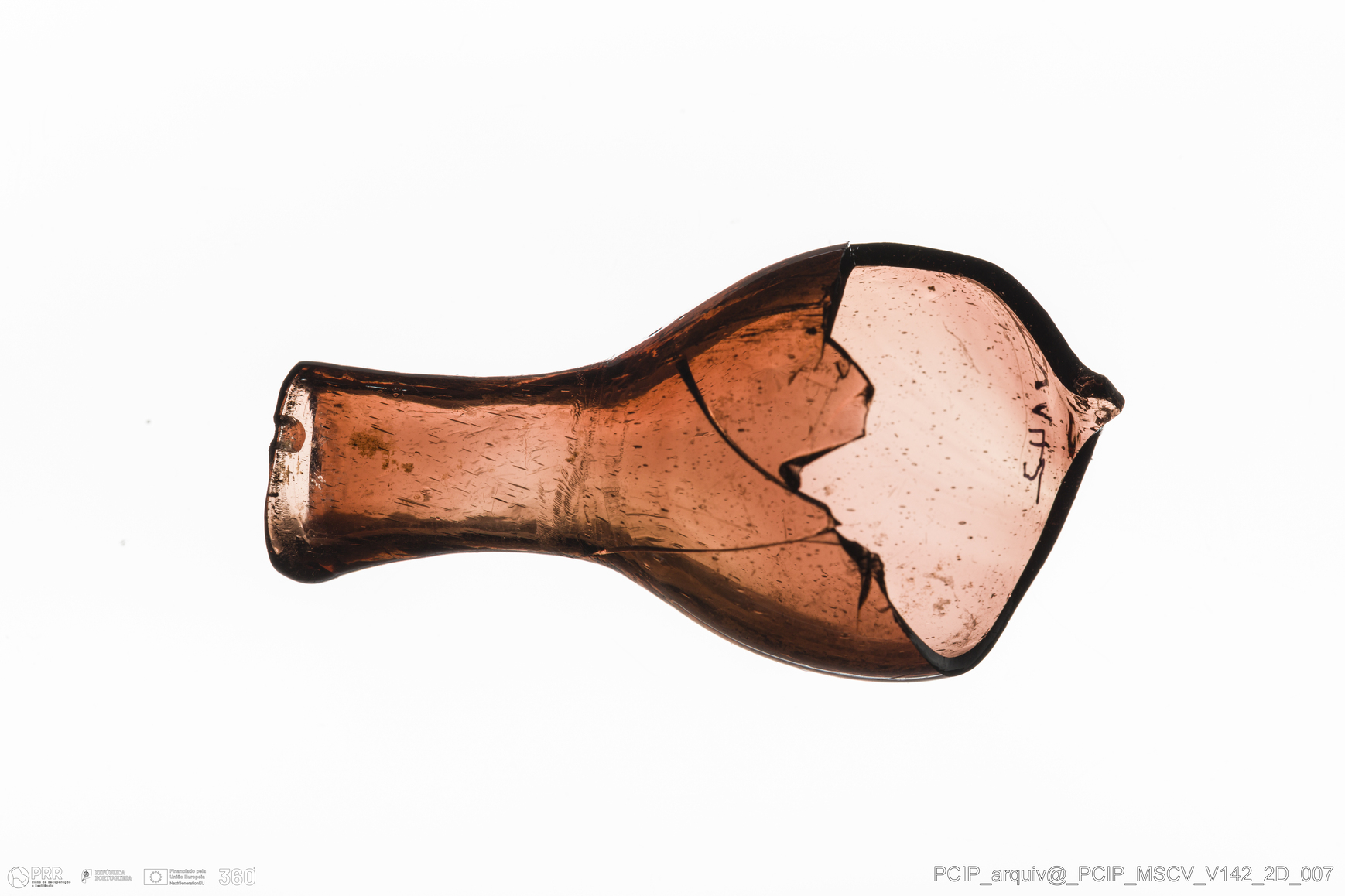 Matéria/Técnica: Vidro; Cronologia: Século XVII; Autoria: Desconhecida; Dimensões: Diâmetro Bordo: 15mm.