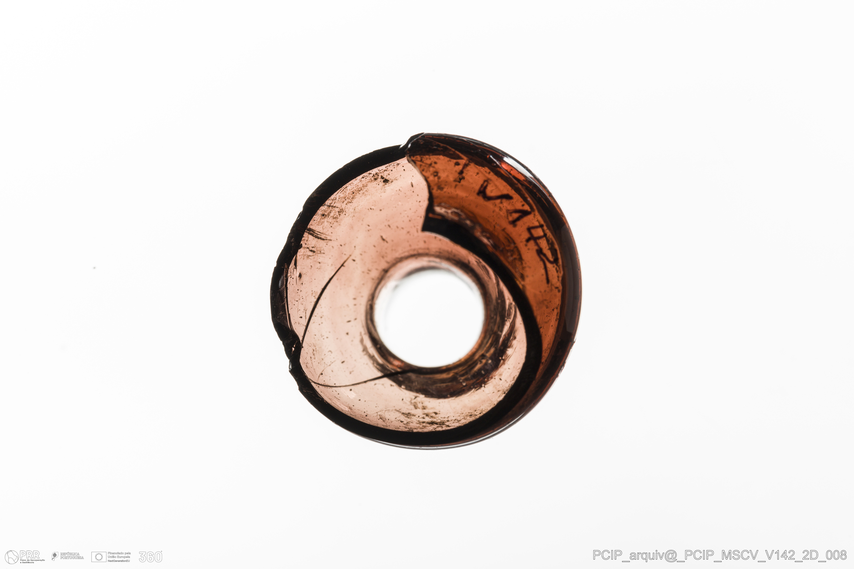 Matéria/Técnica: Vidro; Cronologia: Século XVII; Autoria: Desconhecida; Dimensões: Diâmetro Bordo: 15mm.