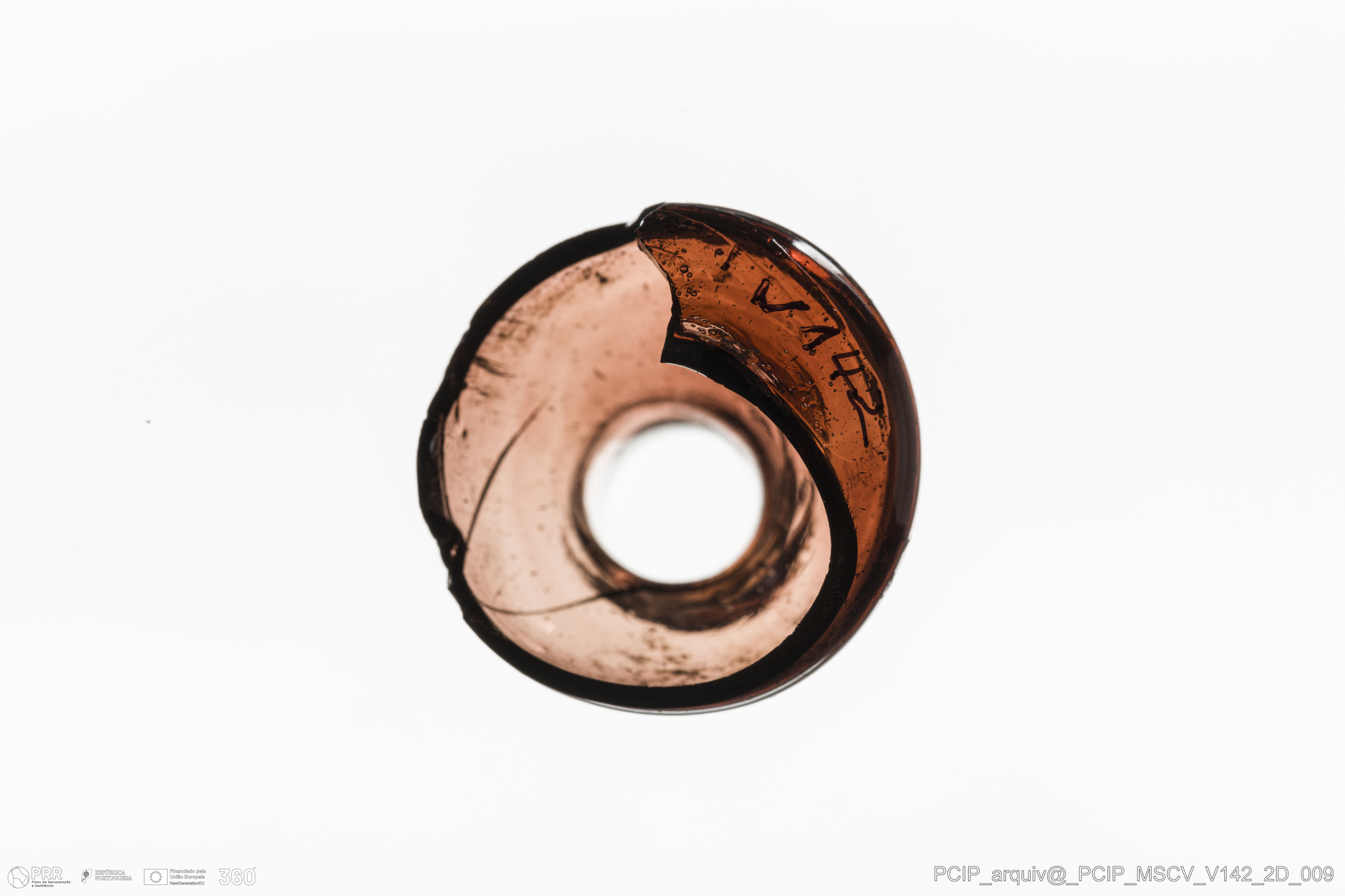 Matéria/Técnica: Vidro; Cronologia: Século XVII; Autoria: Desconhecida; Dimensões: Diâmetro Bordo: 15mm.