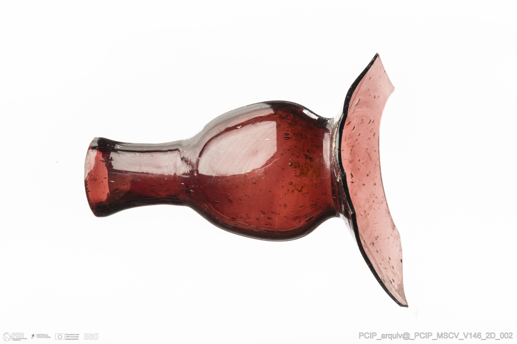 Matéria/Técnica: Vidro; Cronologia: Século XVII; Autoria: Desconhecida; Dimensões: Diâmetro Bordo: 16mm.