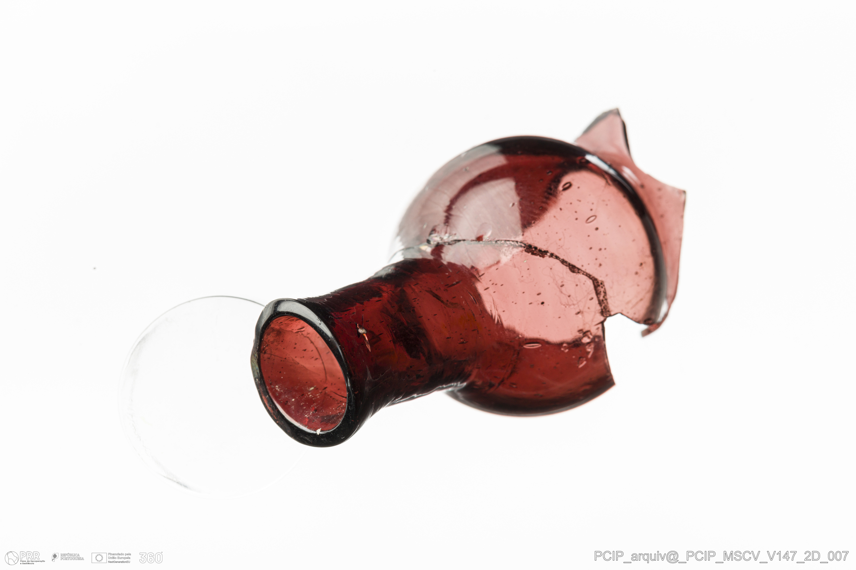 Matéria/Técnica: Vidro; Cronologia: Século XVII; Autoria: Desconhecida; Dimensões: Diâmetro Bordo: 15mm.