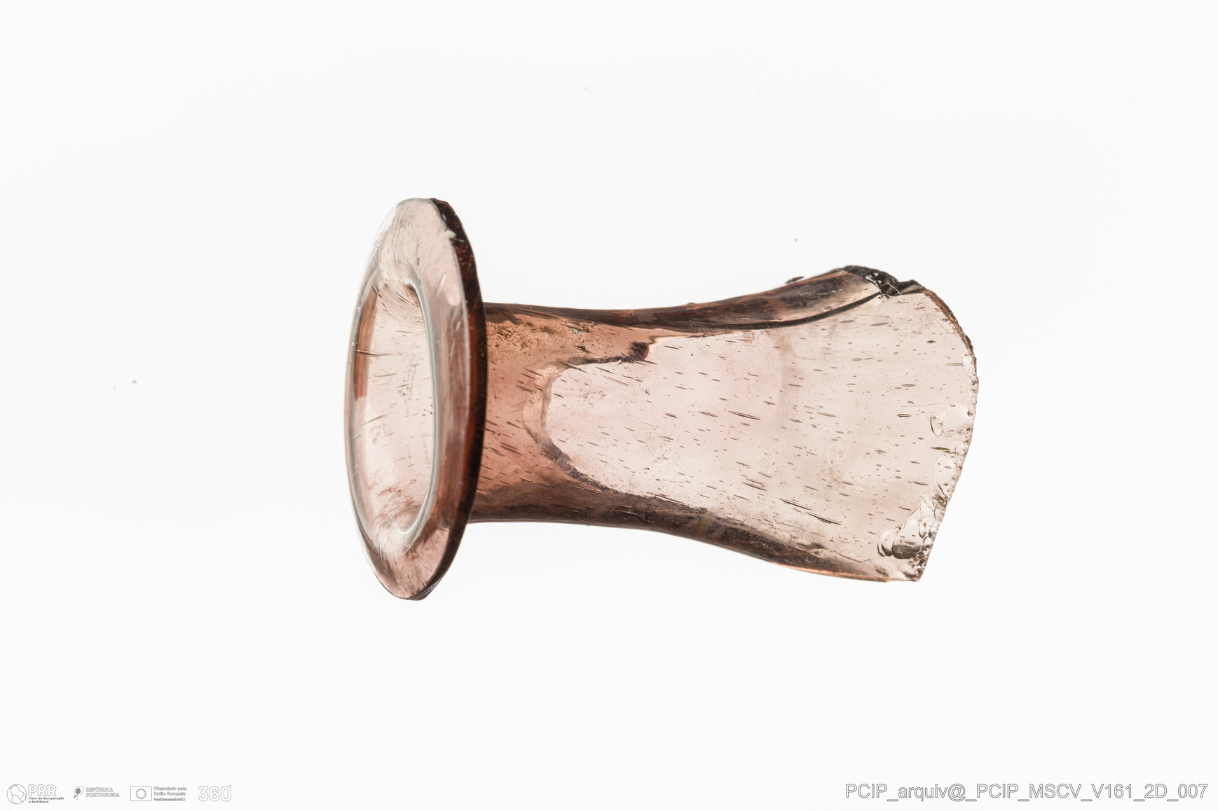 Matéria/Técnica: Vidro; Cronologia: Século XVII; Autoria: Desconhecida; Dimensões: Diâmetro Bordo: 27mm.