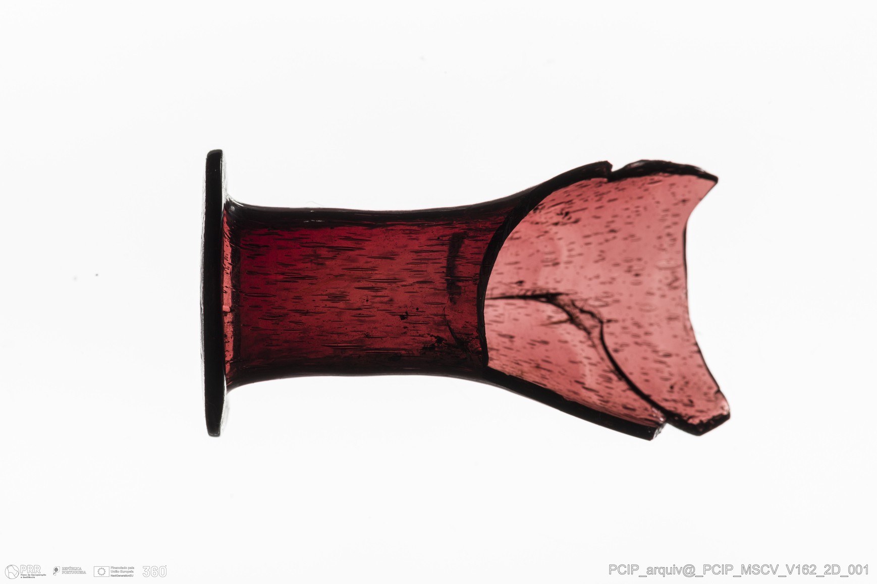 Matéria/Técnica: Vidro; Cronologia: Século XVII; Autoria: Desconhecida; Dimensões: Diâmetro Bordo: 26mm.