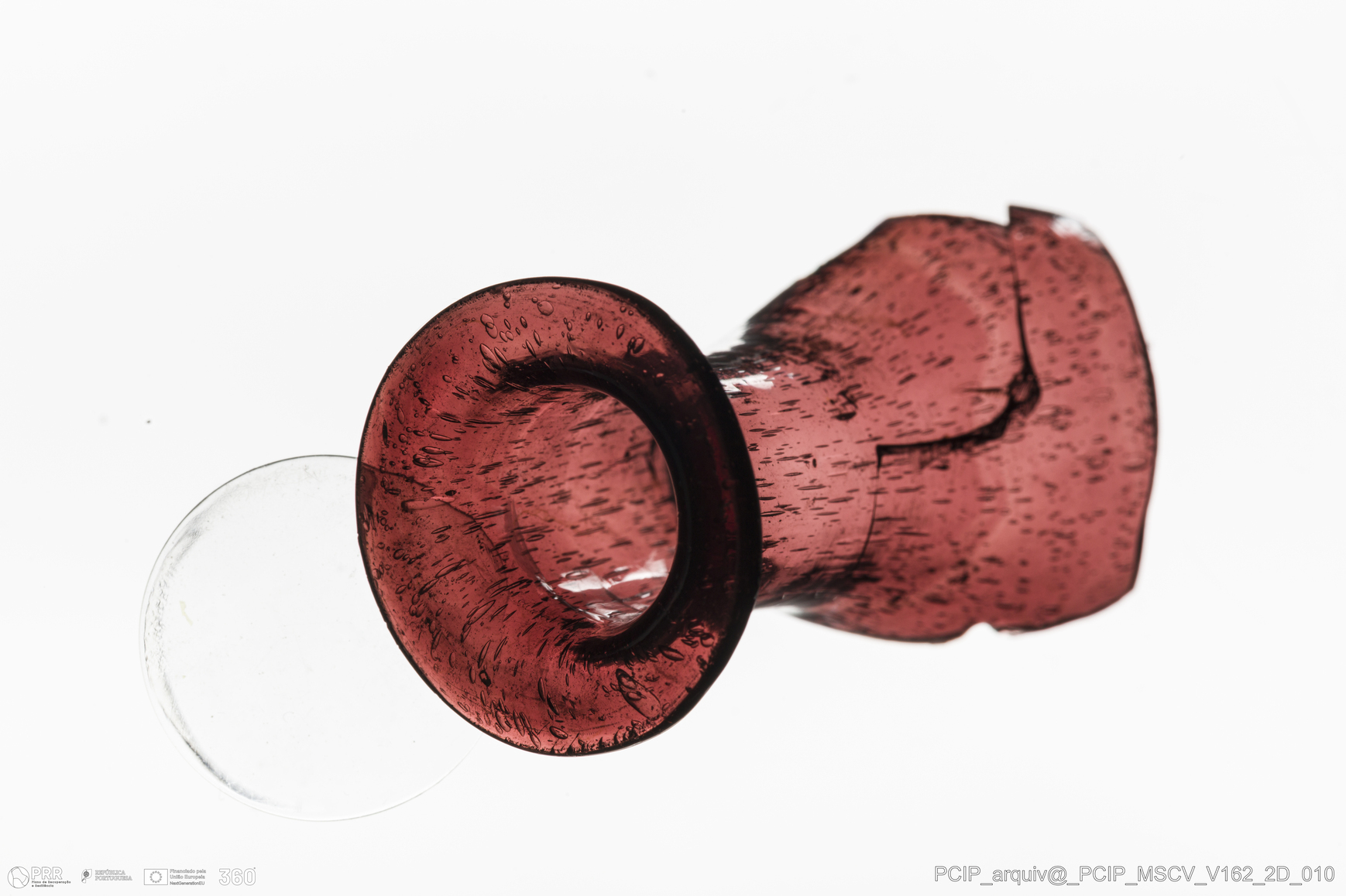 Matéria/Técnica: Vidro; Cronologia: Século XVII; Autoria: Desconhecida; Dimensões: Diâmetro Bordo: 26mm.