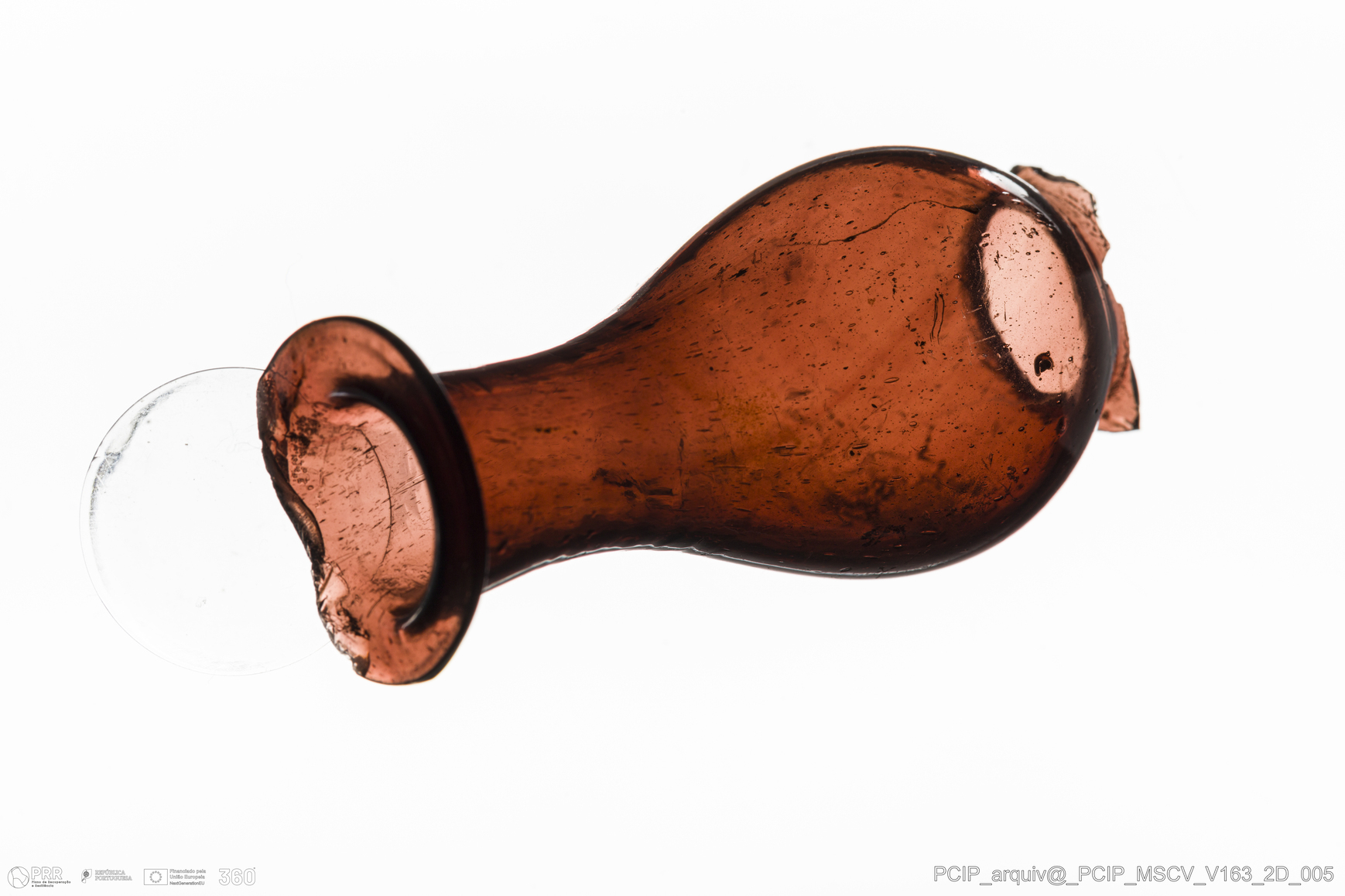 Matéria/Técnica: Vidro; Cronologia: Século XVII; Autoria: Desconhecida; Dimensões: Diâmetro Bordo: 24mm.