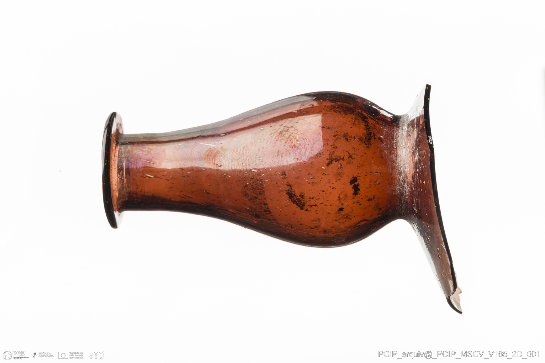 Matéria/Técnica: Vidro; Cronologia: Século XVII; Autoria: Desconhecida; Dimensões: Diâmetro Bordo: 22mm.