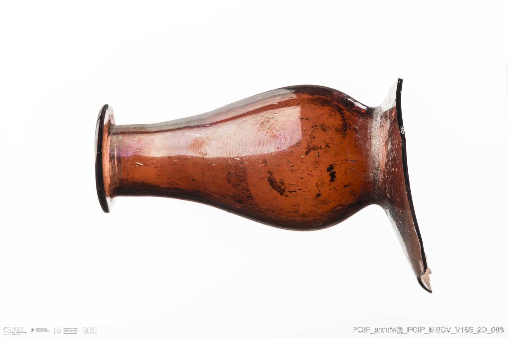 Matéria/Técnica: Vidro; Cronologia: Século XVII; Autoria: Desconhecida; Dimensões: Diâmetro Bordo: 22mm.