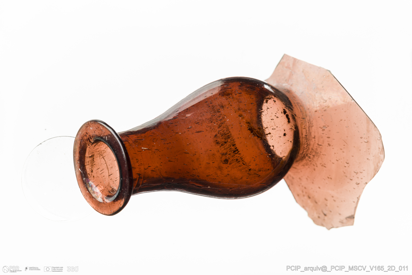 Matéria/Técnica: Vidro; Cronologia: Século XVII; Autoria: Desconhecida; Dimensões: Diâmetro Bordo: 22mm.
