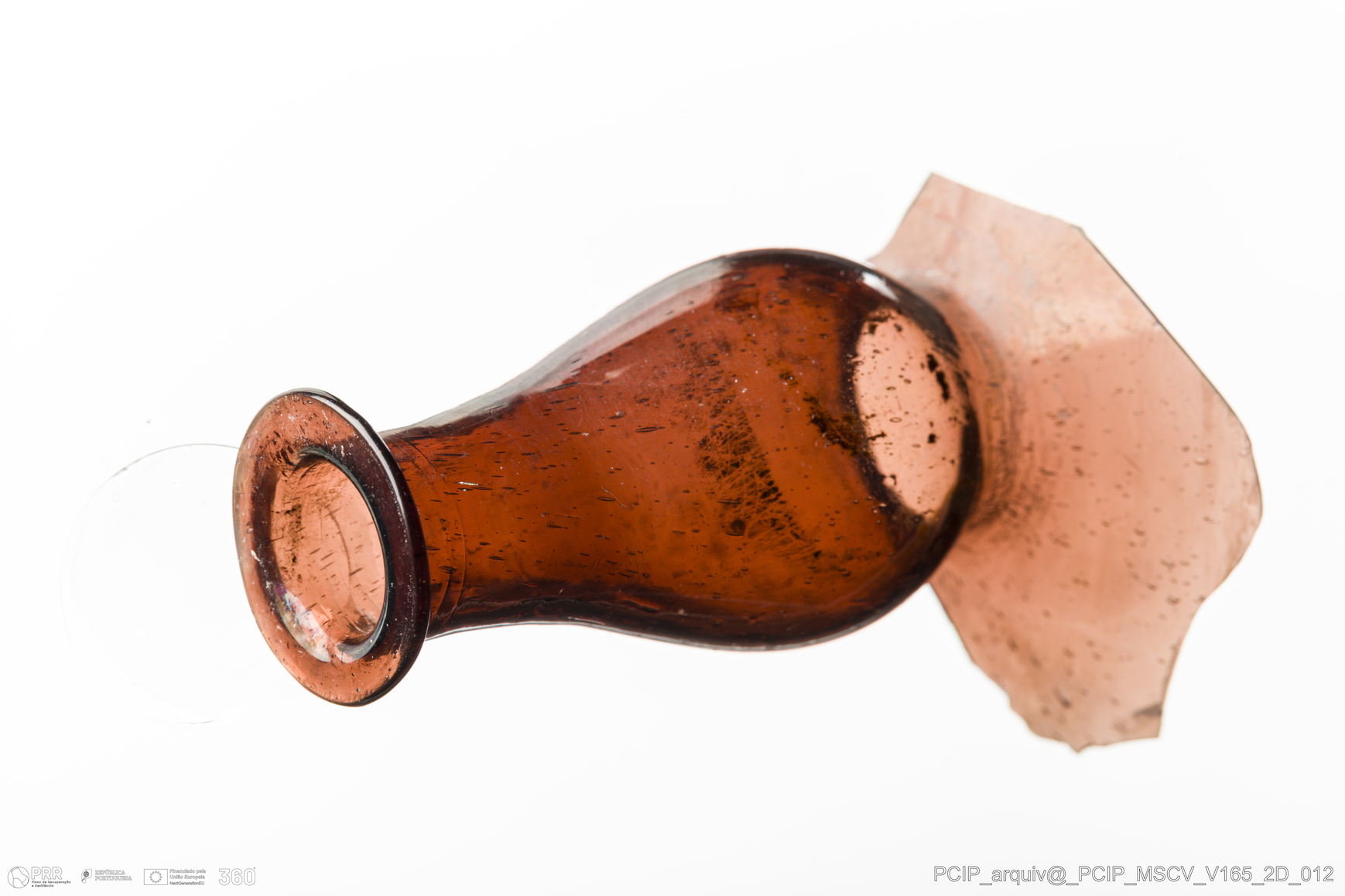 Matéria/Técnica: Vidro; Cronologia: Século XVII; Autoria: Desconhecida; Dimensões: Diâmetro Bordo: 22mm.