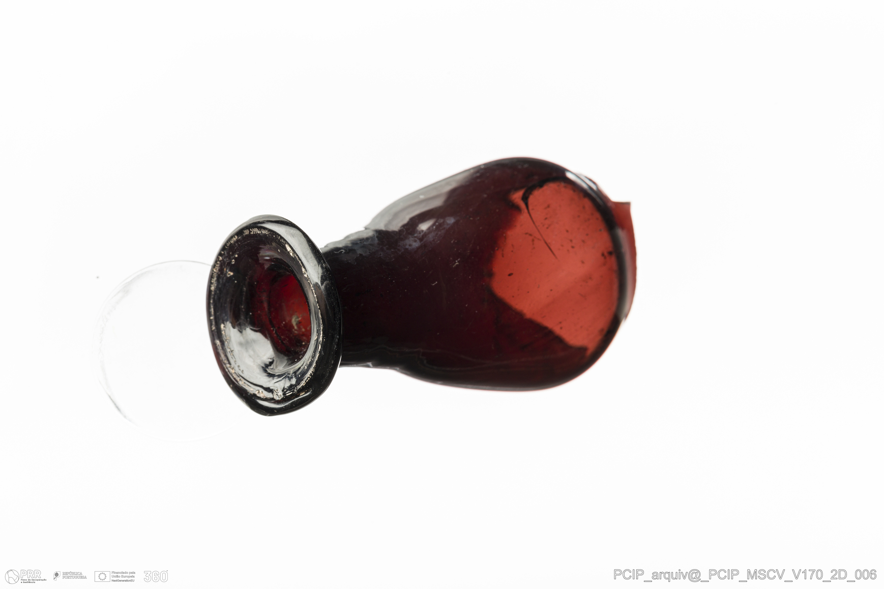 Matéria/Técnica: Vidro; Cronologia: Século XVII; Autoria: Desconhecida; Dimensões: Diâmetro Bordo: 22,5mm.