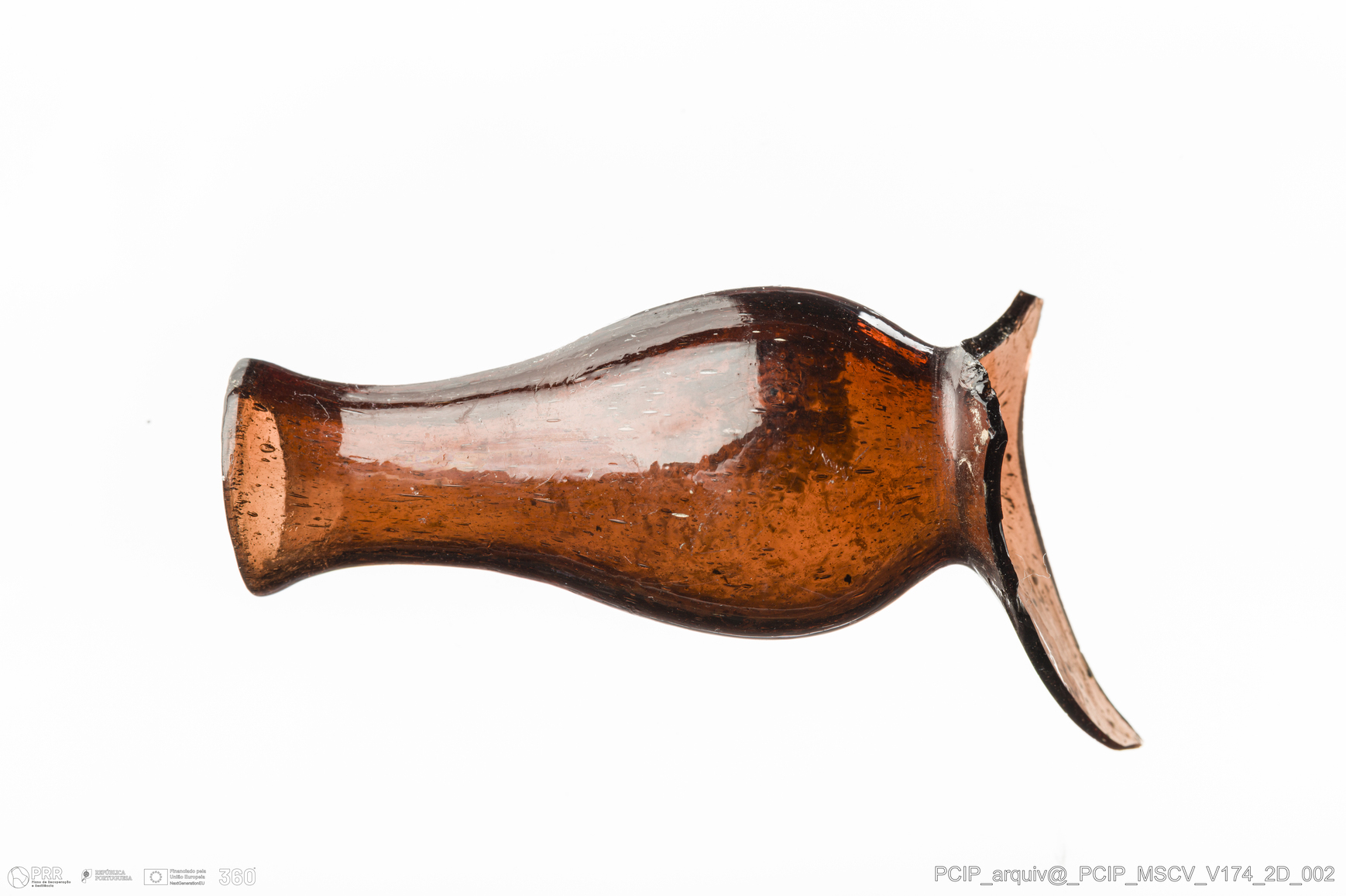 Matéria/Técnica: Vidro; Cronologia: Século XVII; Autoria: Desconhecida; Dimensões: Diâmetro Bordo: 19mm.
