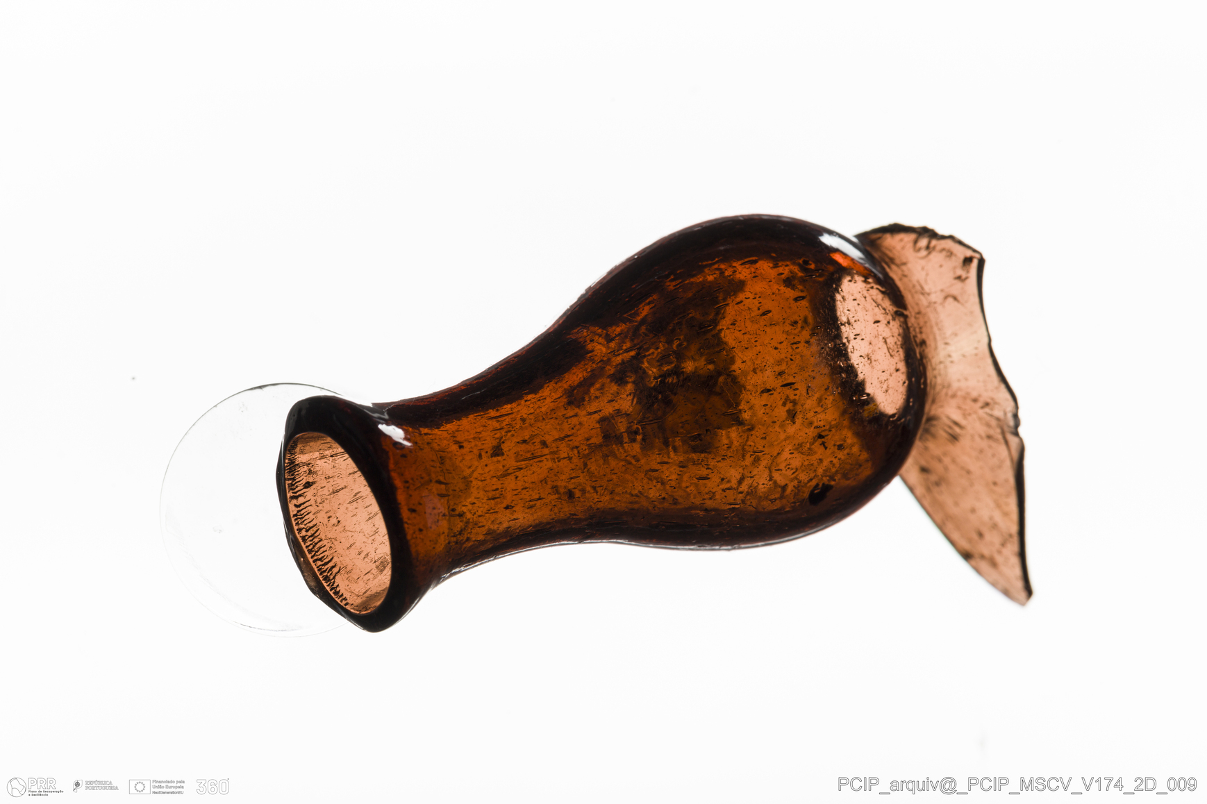 Matéria/Técnica: Vidro; Cronologia: Século XVII; Autoria: Desconhecida; Dimensões: Diâmetro Bordo: 19mm.