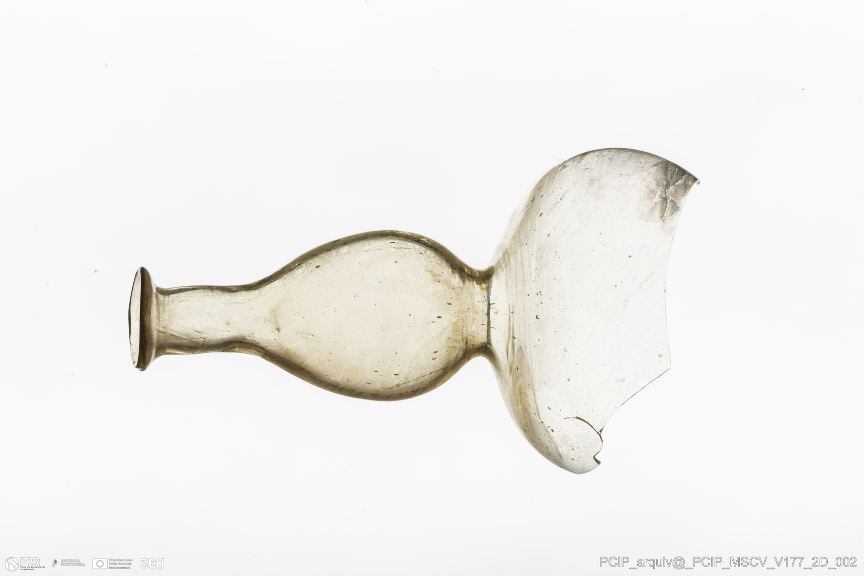 Matéria/Técnica: Vidro; Cronologia: Século XVII; Autoria: Desconhecida; Dimensões: Diâmetro Bordo: 17mm.