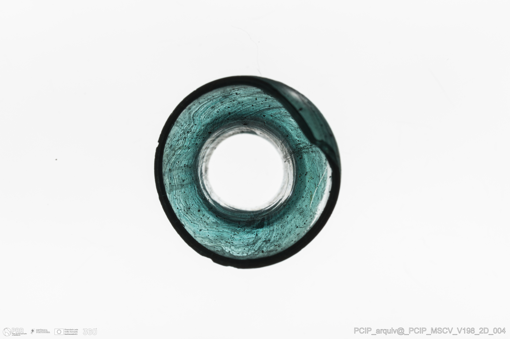 Matéria/Técnica: Vidro; Cronologia: Século XVII; Autoria: Desconhecida; Dimensões: Diâmetro bordo: 23mm.