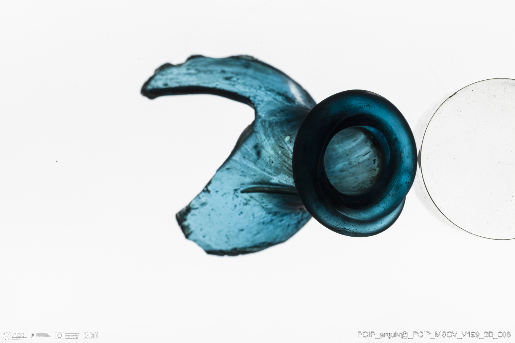Matéria/Técnica: Vidro; Cronologia: Século XVII; Autoria: Desconhecida; Dimensões: Diâmetro bordo: 18mm.