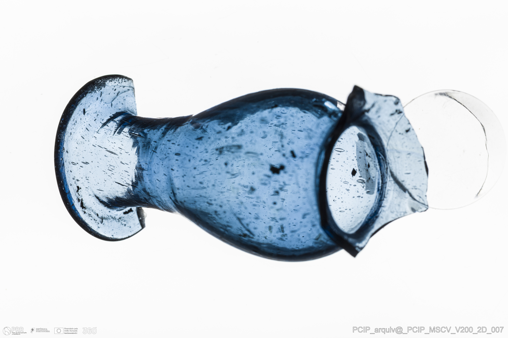 Matéria/Técnica: Vidro; Cronologia: Século XVII; Autoria: Desconhecida; Dimensões: Diâmetro bordo: 30mm.