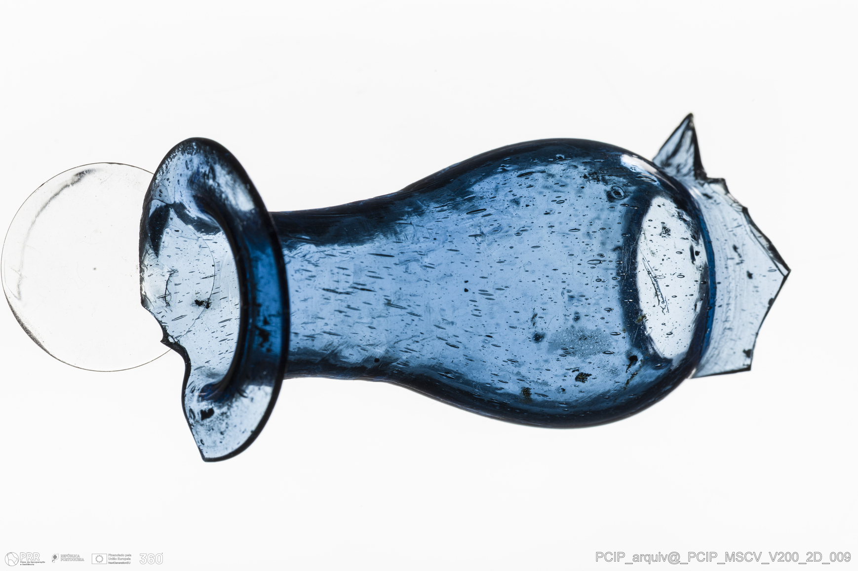 Matéria/Técnica: Vidro; Cronologia: Século XVII; Autoria: Desconhecida; Dimensões: Diâmetro bordo: 30mm.
