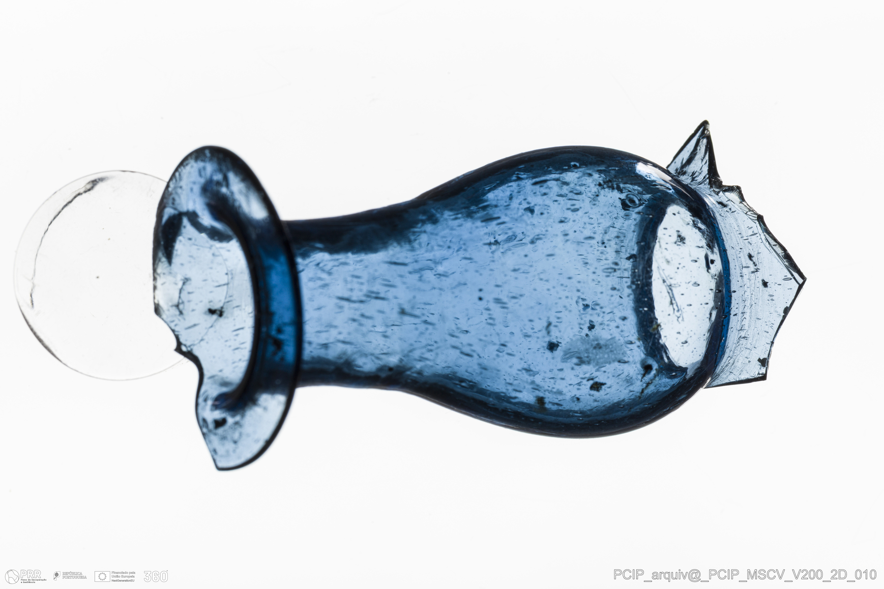 Matéria/Técnica: Vidro; Cronologia: Século XVII; Autoria: Desconhecida; Dimensões: Diâmetro bordo: 30mm.