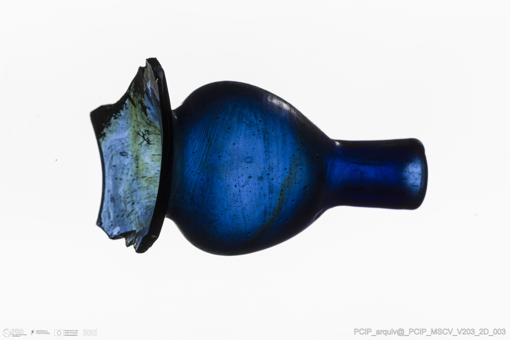 Matéria/Técnica: Vidro; Cronologia: Século XVII; Autoria: Desconhecida; Dimensões: Diâmetro bordo: 11mm.
