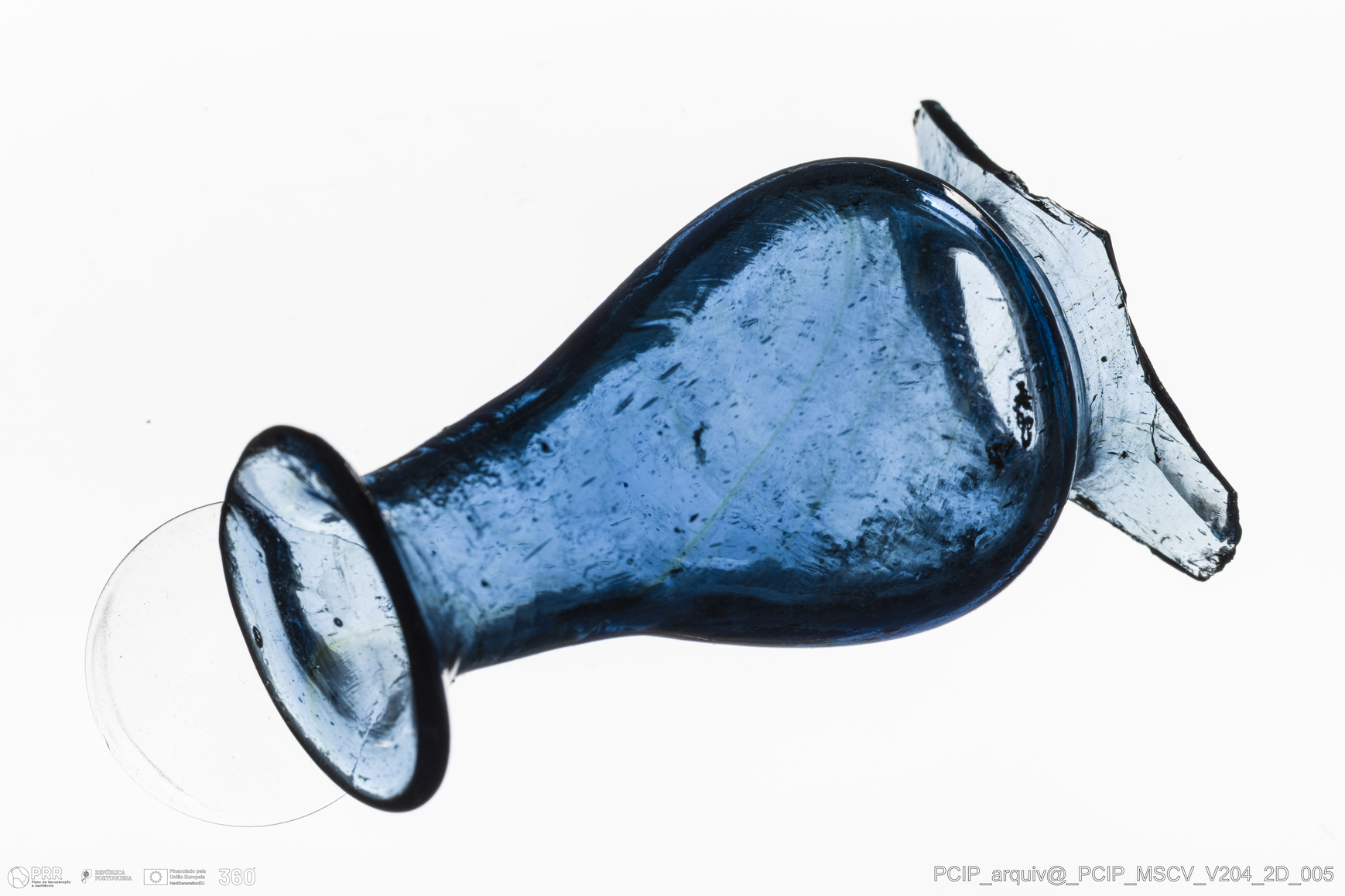 Matéria/Técnica: Vidro; Cronologia: Século XVII; Autoria: Desconhecida; Dimensões: Largura: 37mm; Altura: 59mm.