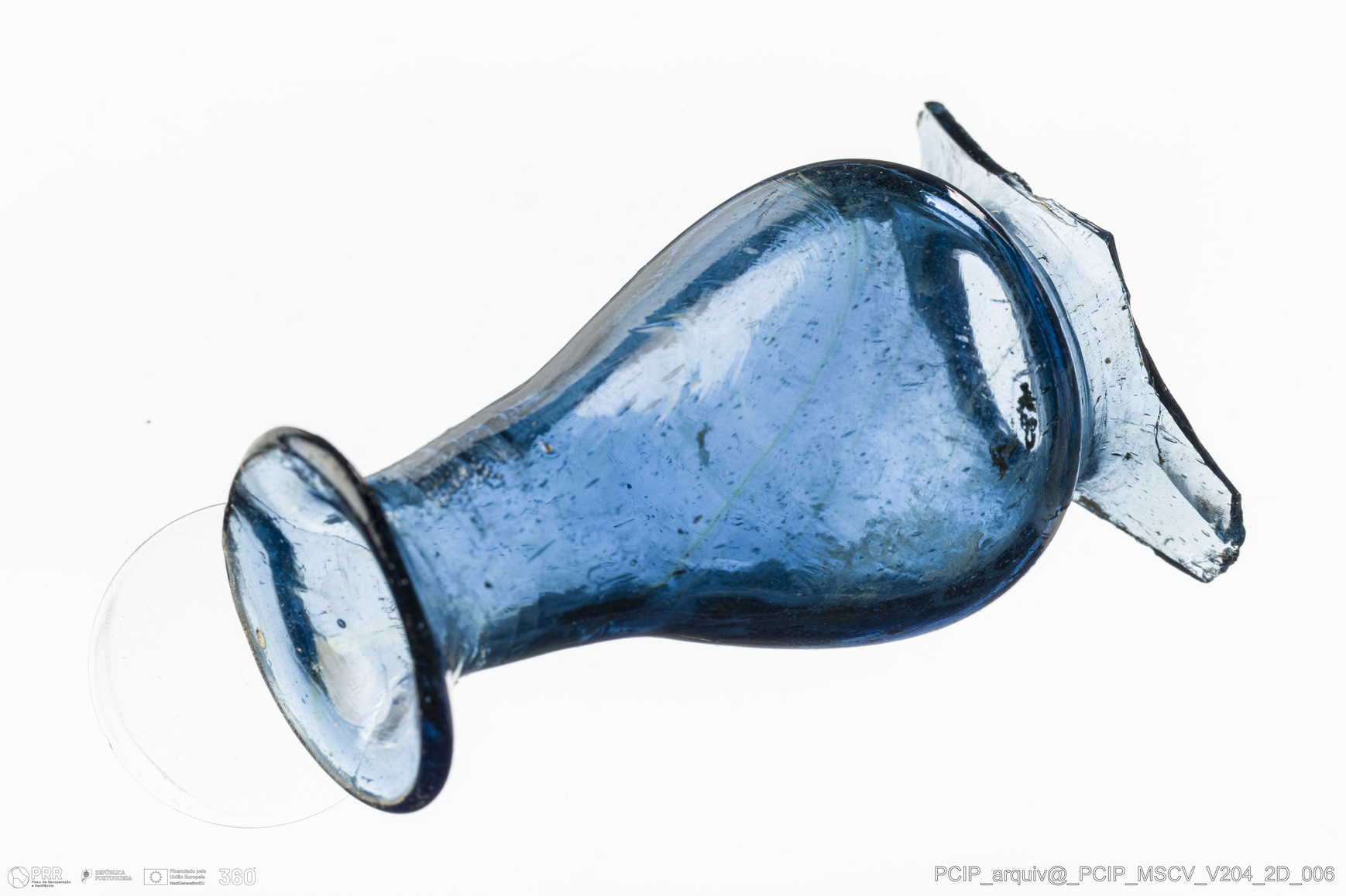 Matéria/Técnica: Vidro; Cronologia: Século XVII; Autoria: Desconhecida; Dimensões: Largura: 37mm; Altura: 59mm.
