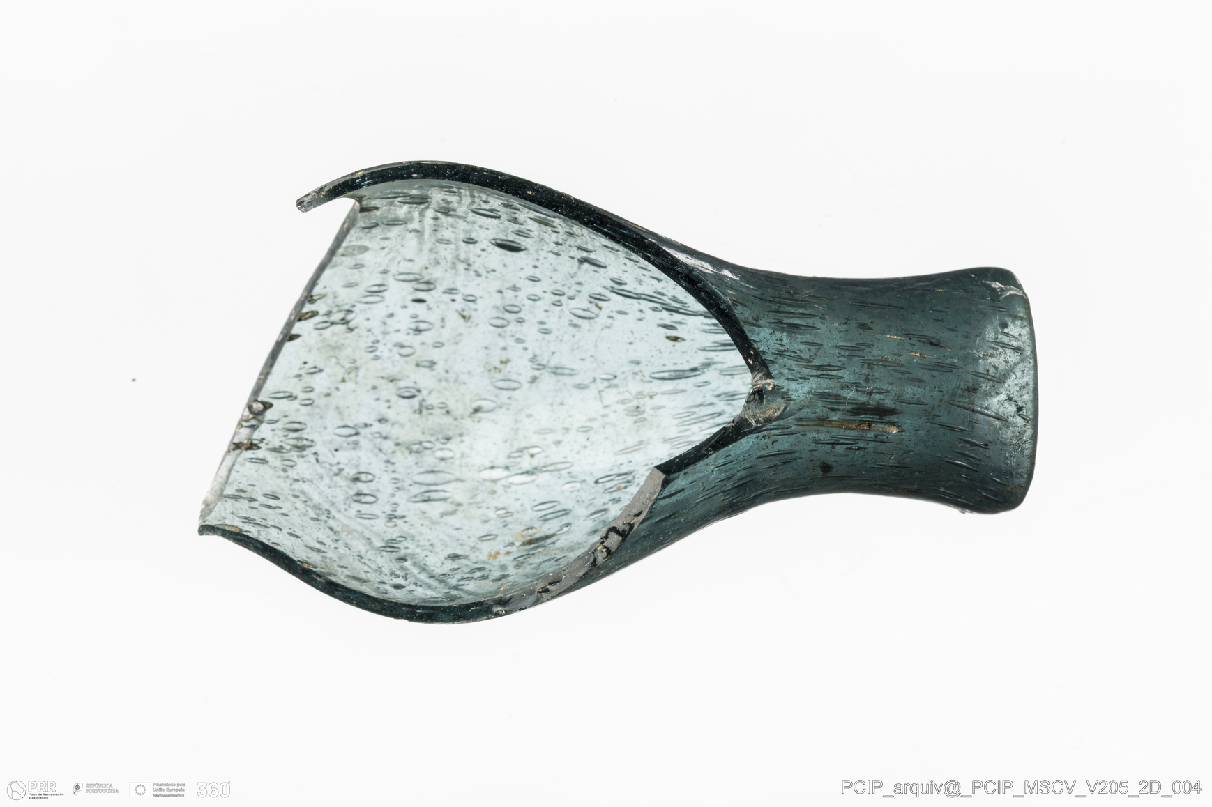Matéria/Técnica: Vidro; Cronologia: Século XVII; Autoria: Desconhecida; Dimensões: Diâmetro bordo: 15mm.