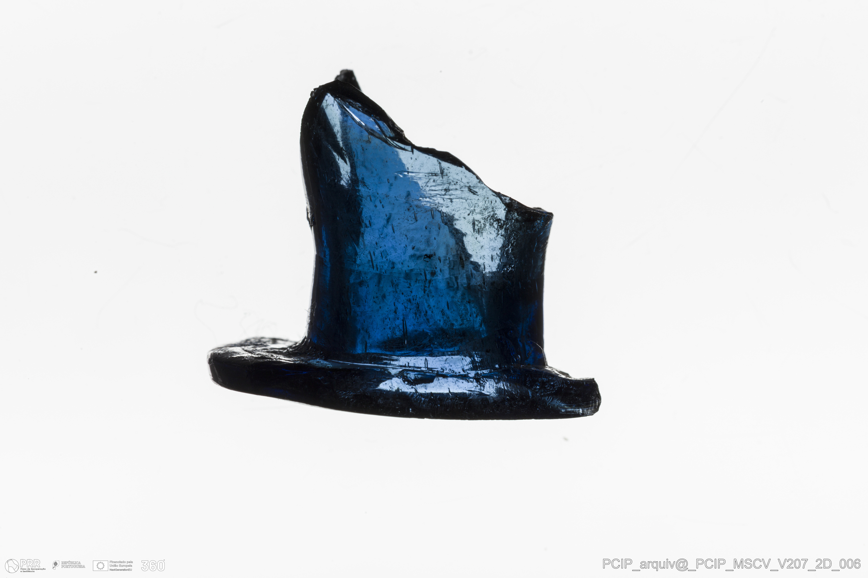 Matéria/Técnica: Vidro; Cronologia: Século XVII; Autoria: Desconhecida; Dimensões: Diâmetro bordo: 28mm.