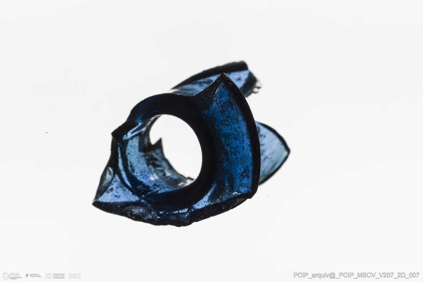 Matéria/Técnica: Vidro; Cronologia: Século XVII; Autoria: Desconhecida; Dimensões: Diâmetro bordo: 28mm.