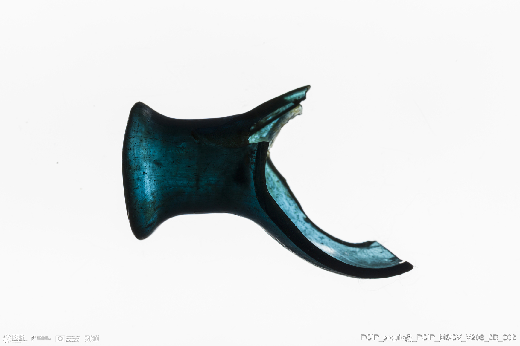 Matéria/Técnica: Vidro; Cronologia: Século XVII; Autoria: Desconhecida; Dimensões: Diâmetro bordo: 20mm.