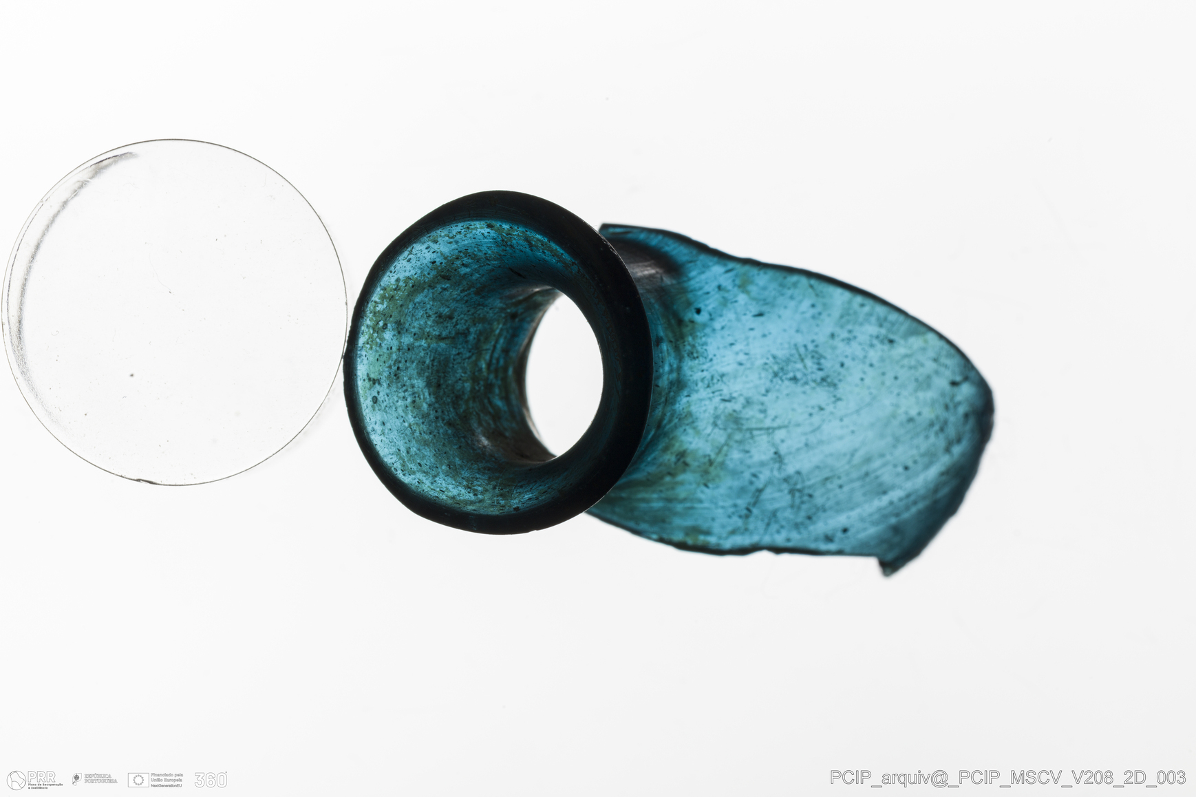 Matéria/Técnica: Vidro; Cronologia: Século XVII; Autoria: Desconhecida; Dimensões: Diâmetro bordo: 20mm.